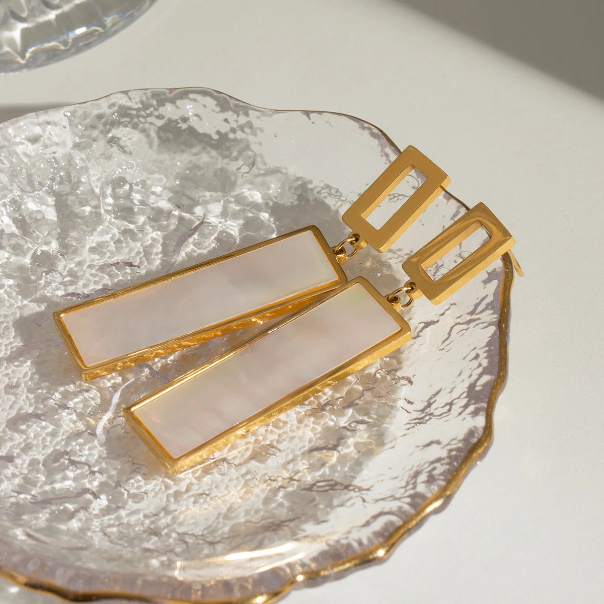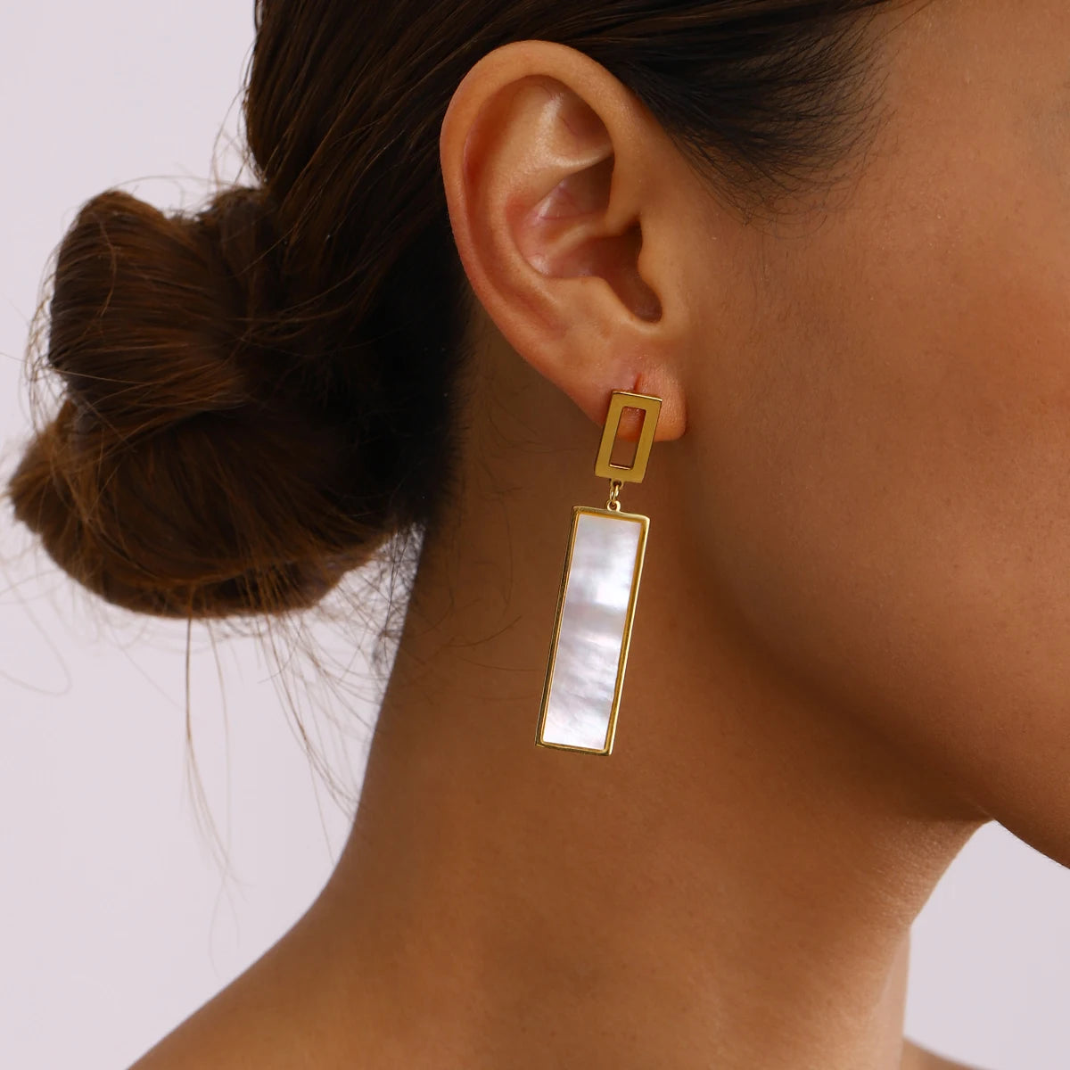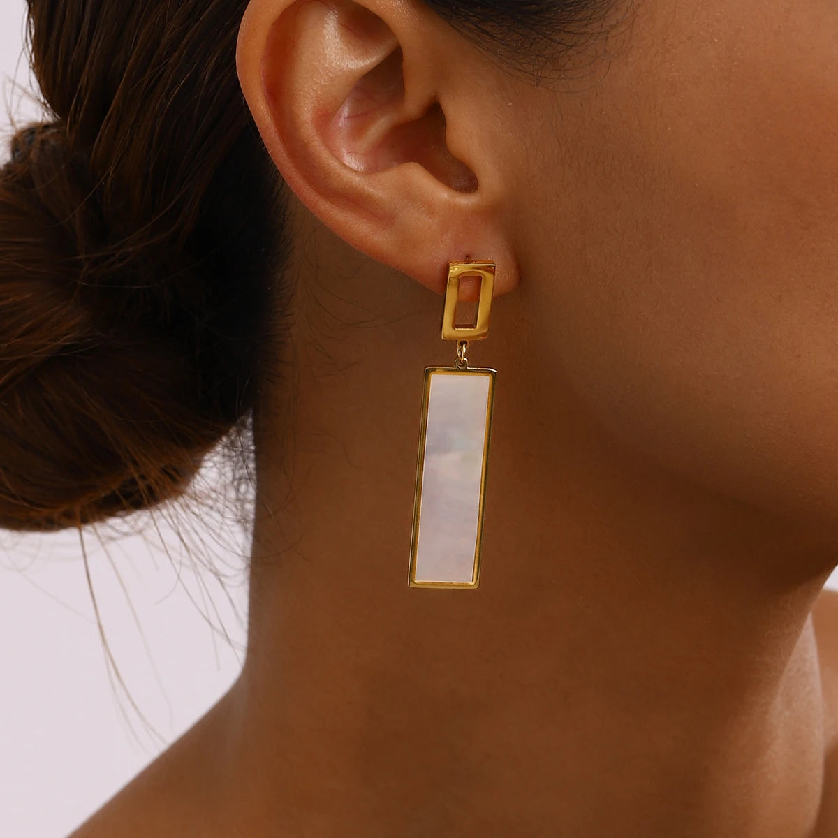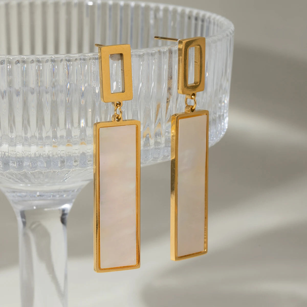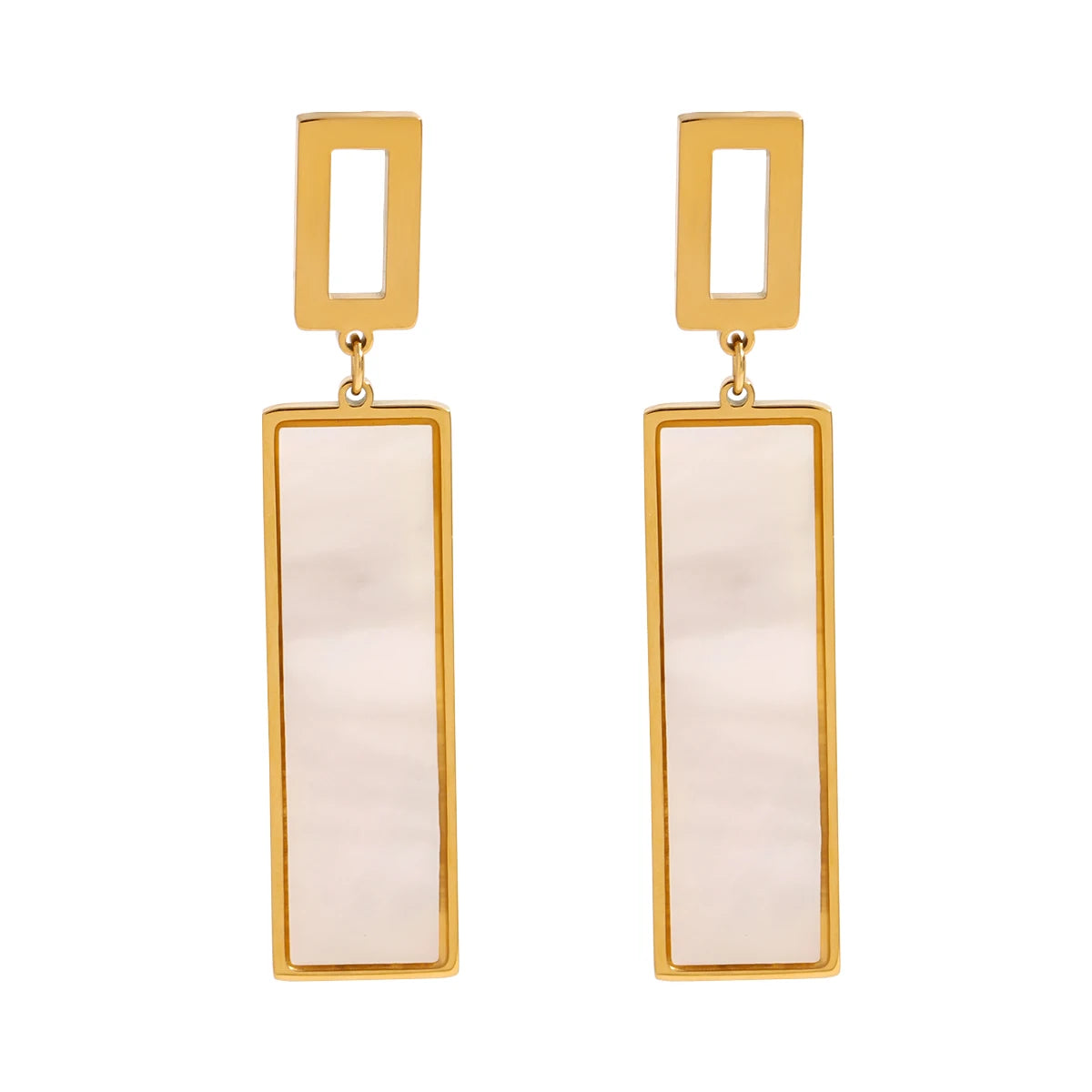 ステンレス304 低ニッケル 水に濡れても錆びにくい 18Kゴールドメッキ ピアス シェル スクエア【YJ01834】