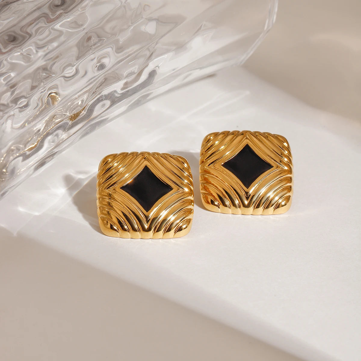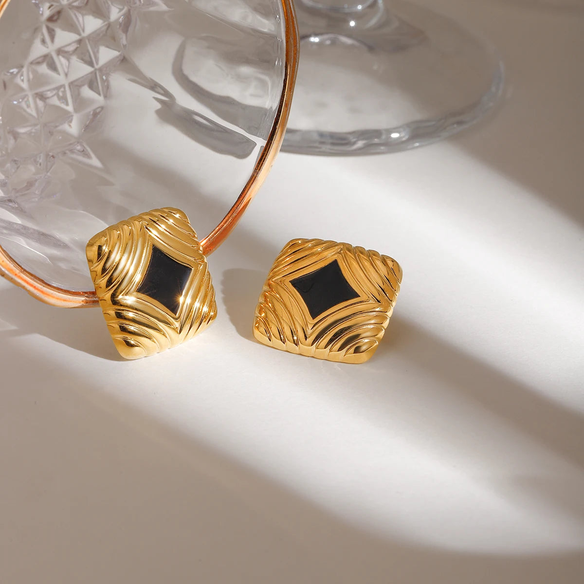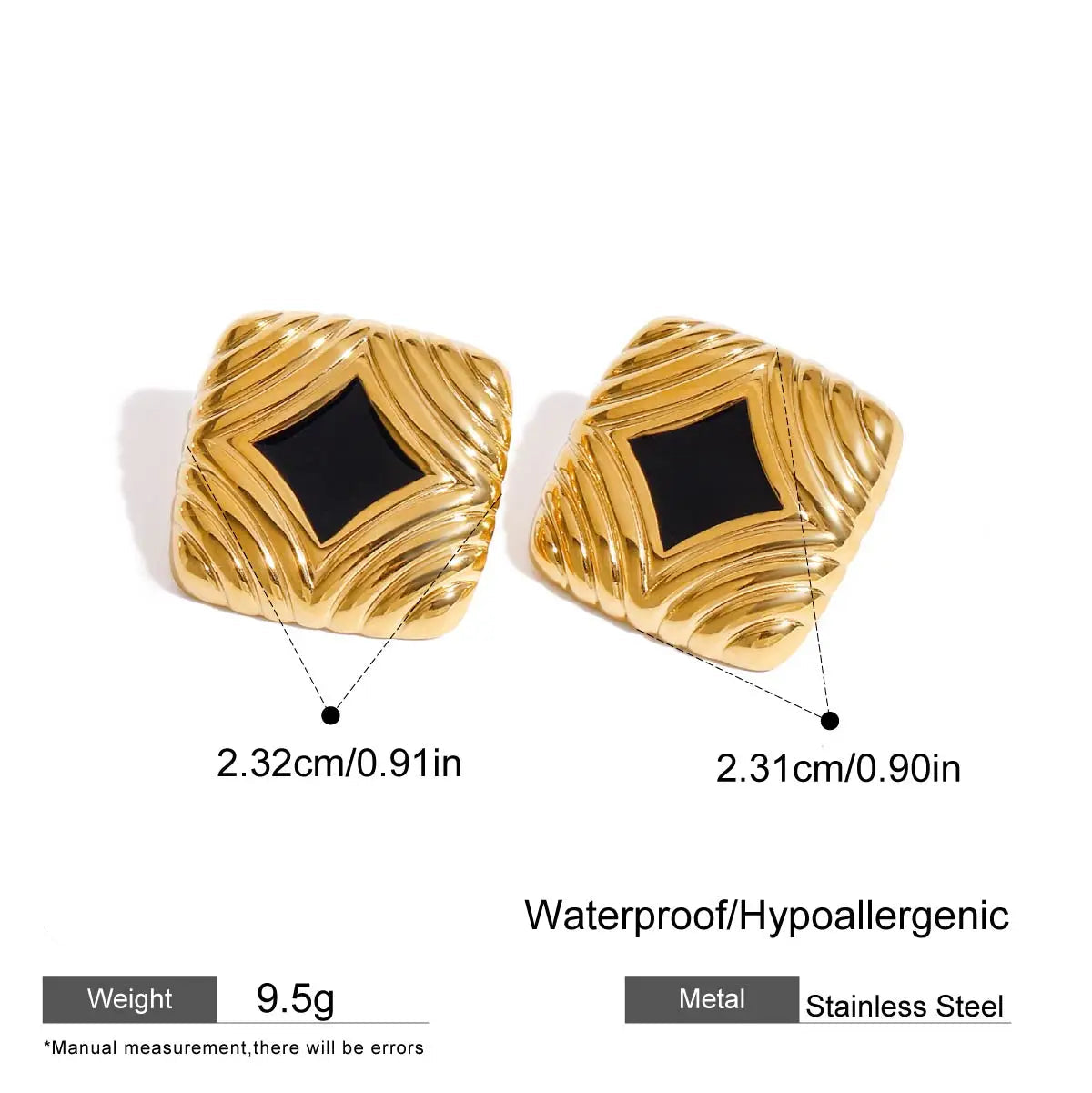 ステンレス304 低ニッケル 水に濡れても錆びにくい 18Kゴールドメッキ ピアス スクエア【YJ02039】
