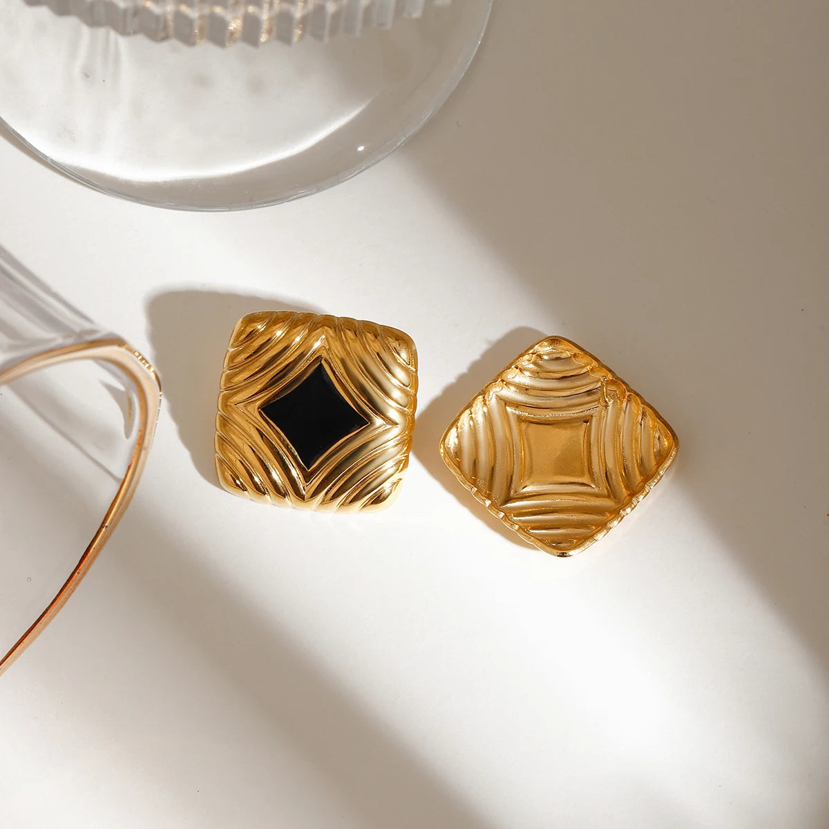 - ピアスのポスト部分は素材の特性上、キャッチがきつく感じられる場合や、スムーズに取り外せないことがありますが、これは不良品ではありませんのでご了承ください。特に新品時はゴールドメッキコーティングの厚みにより、やや固めに感じることがございます。無理に力を加えるとポストの曲がりや破損につながる可能性があるため、優しくゆっくりと着脱いただくことをおすすめします。