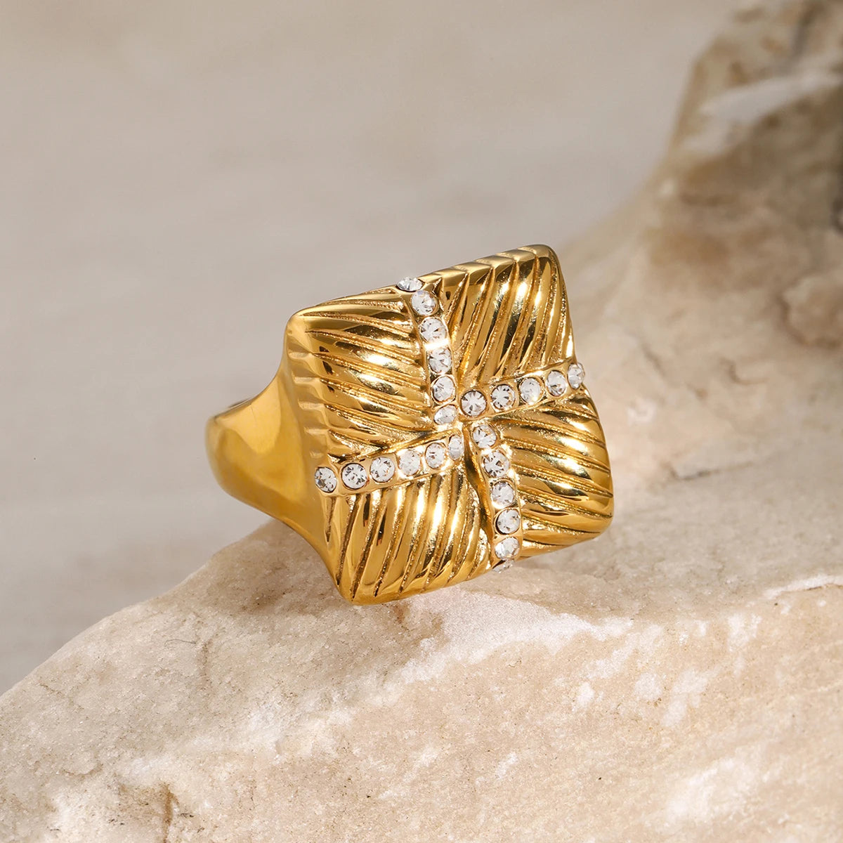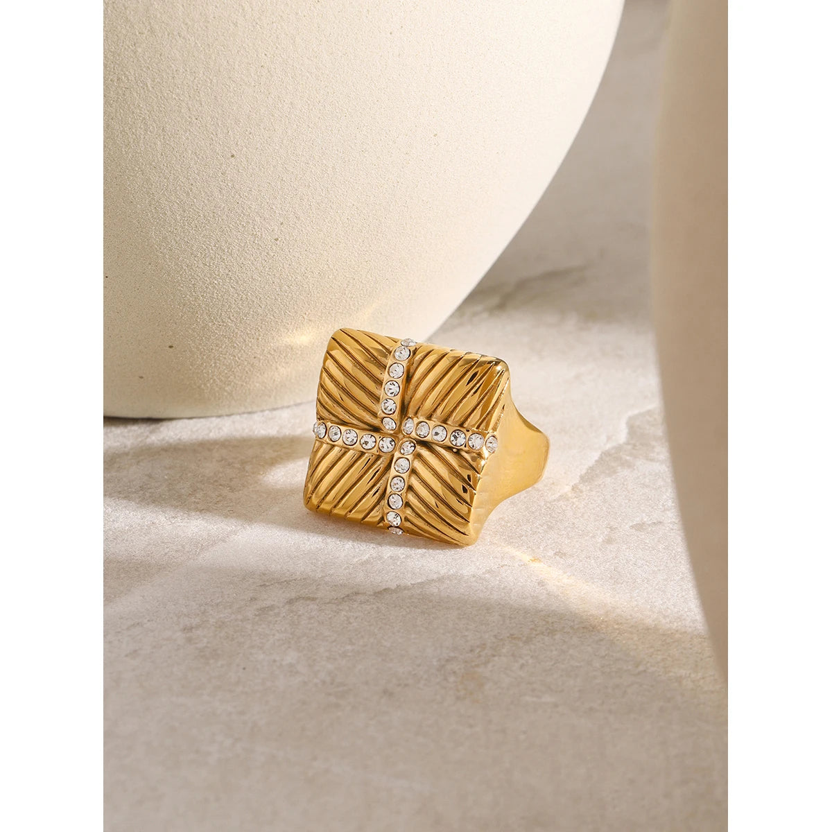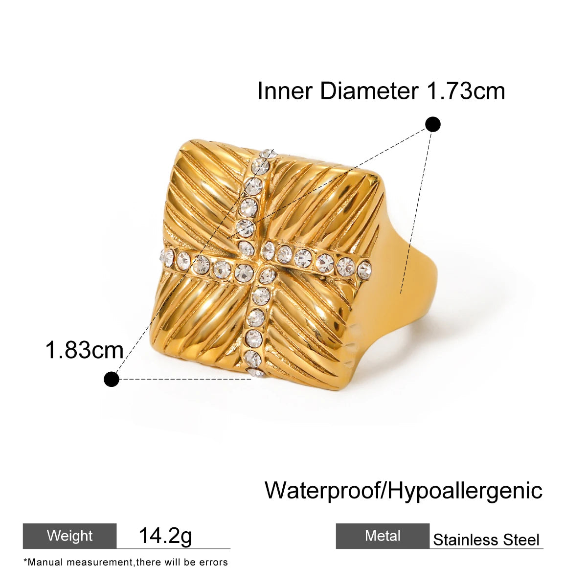 ステンレス304 低ニッケル 水に濡れても錆びにくい 18Kゴールドメッキ リング チャンキー スクエア 【YJ02111】