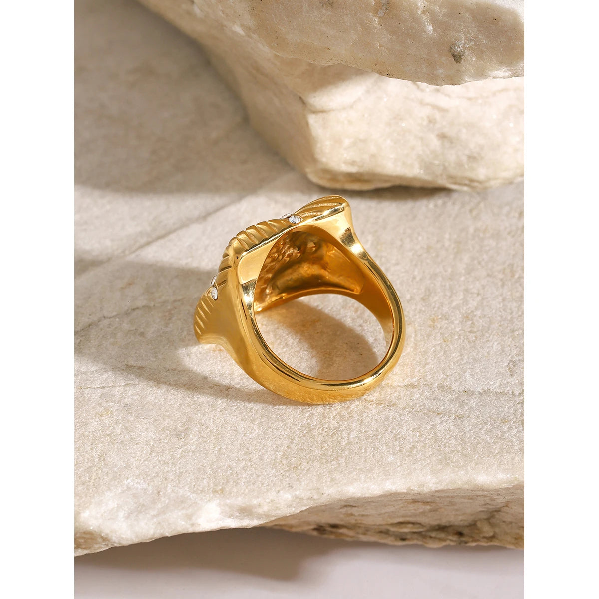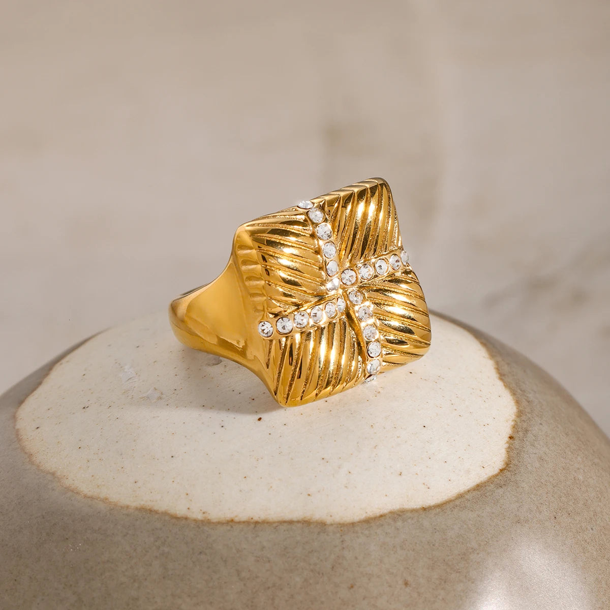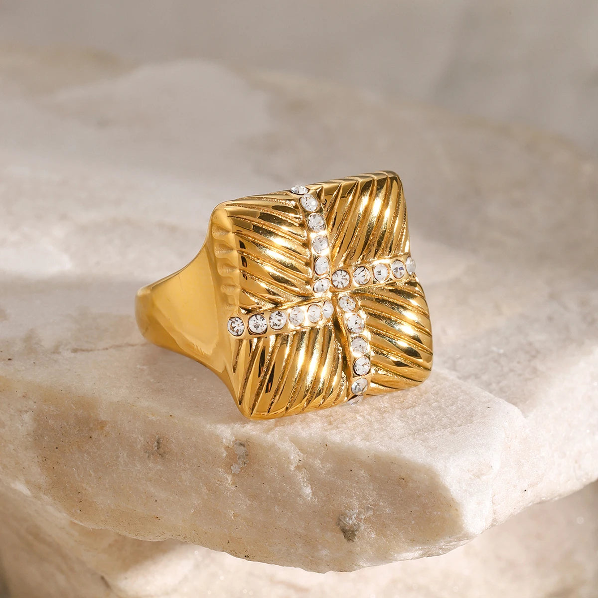 ステンレス304 低ニッケル 水に濡れても錆びにくい 18Kゴールドメッキ リング チャンキー スクエア 【YJ02111】