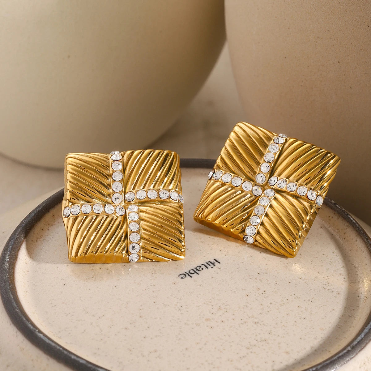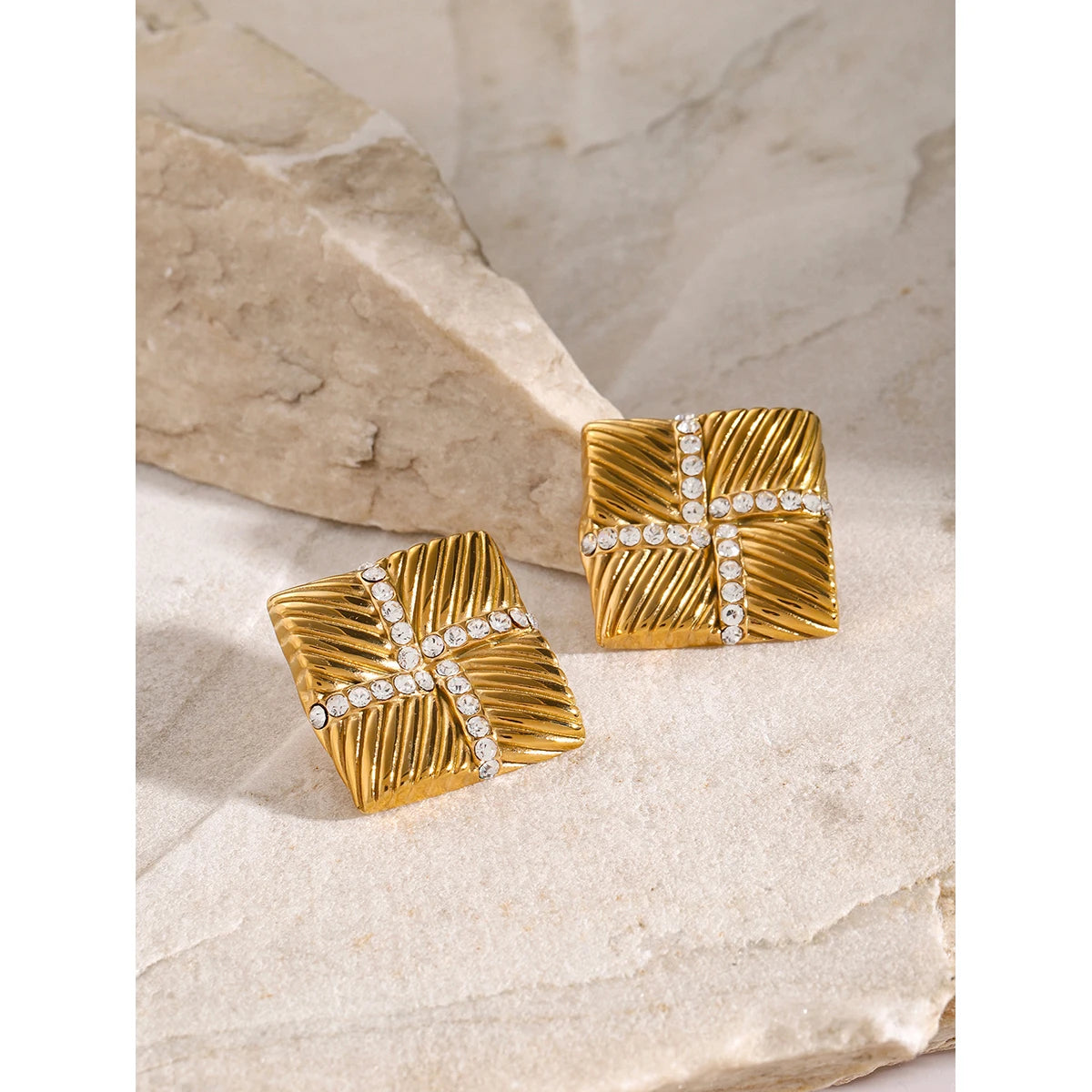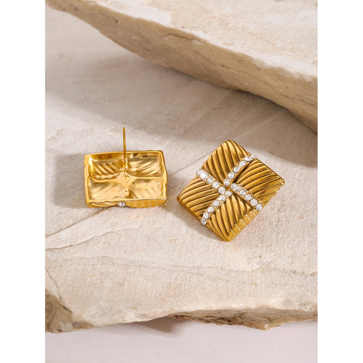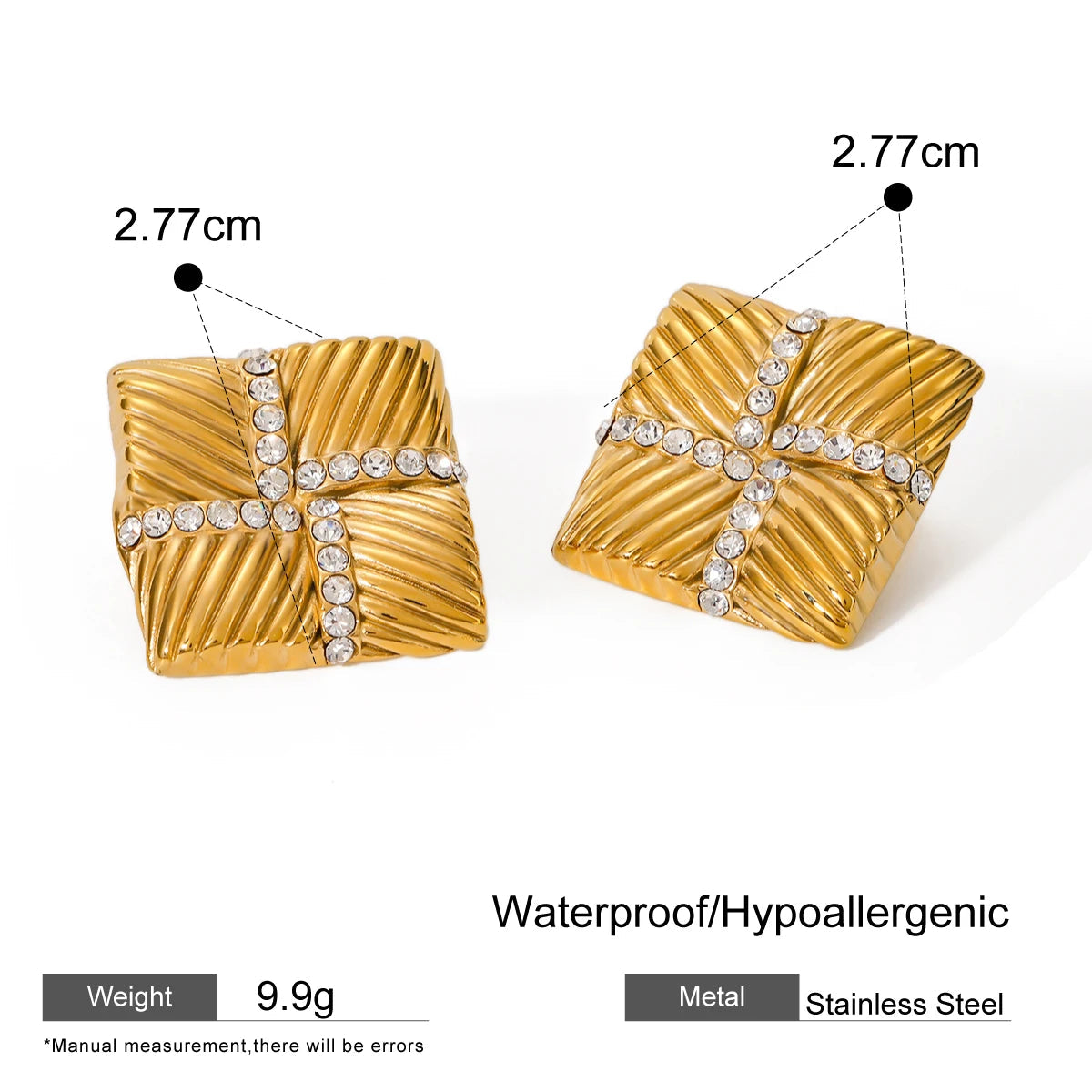 ステンレス304 低ニッケル 水に濡れても錆びにくい 18Kゴールドメッキ ピアス チャンキー スクエア 【YJ02112】
