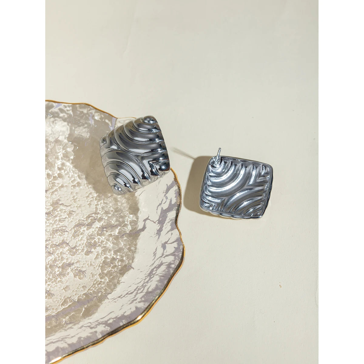 - ピアスのポスト部分はメッキ加工の特性上、キャッチがきつく感じられる場合や、スムーズに取り外せないことがありますが、これは不良品ではありませんのでご了承ください。