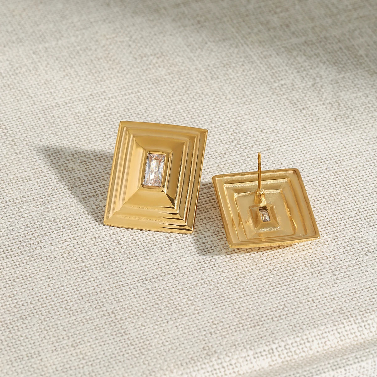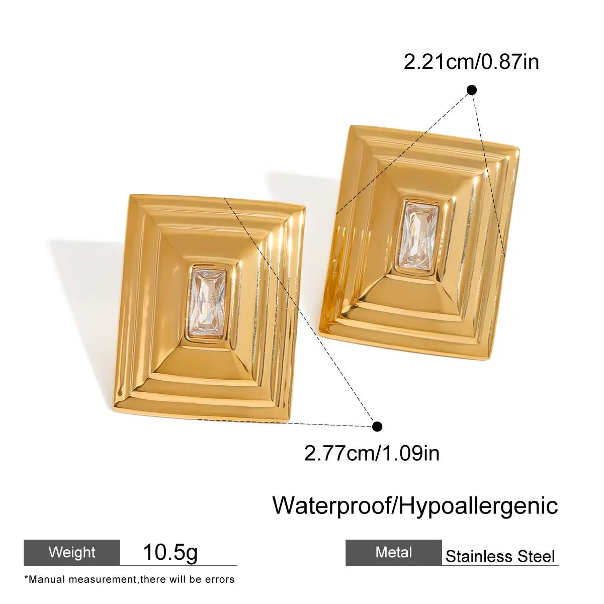 ステンレス304 低ニッケル 水に濡れても錆びにくい 18Kゴールドメッキ ピアス スクエア ジルコニア 【YJ02610】