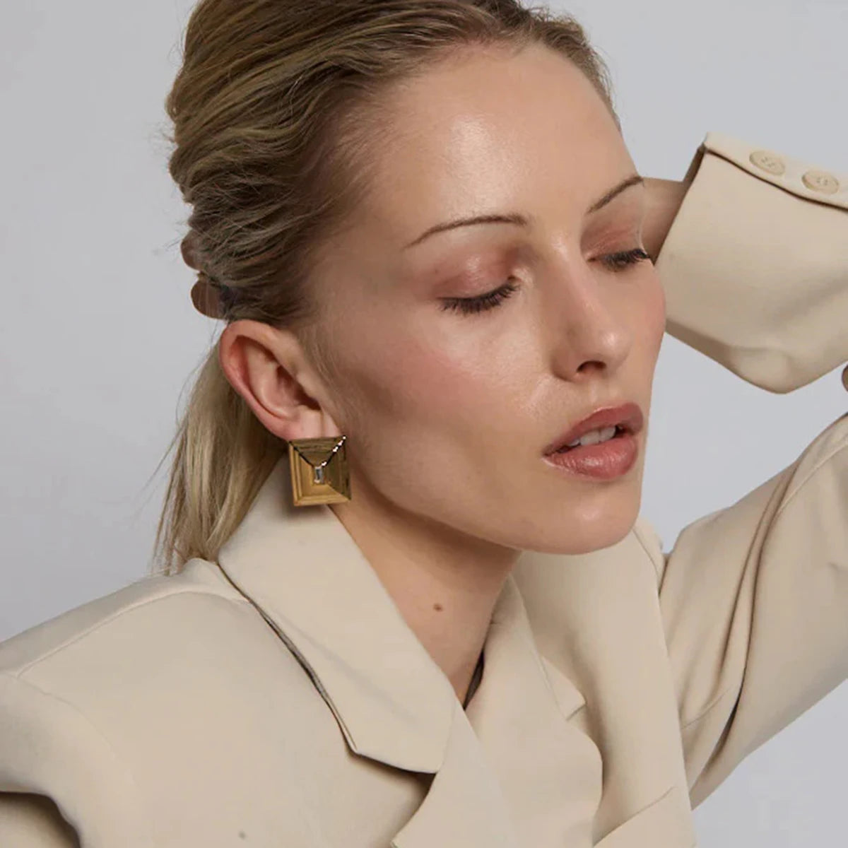 • ピアスのポスト部分は素材の特性上、キャッチがきつく感じられる場合や、スムーズに取り外せないことがありますが、これは不良品ではありませんのでご了承ください。特に新品時はゴールドメッキコーティングの厚みにより、やや固めに感じることがございます。無理に力を加えるとポストの曲がりや破損につながる可能性があるため、優しくゆっくりと着脱いただくことをおすすめします。