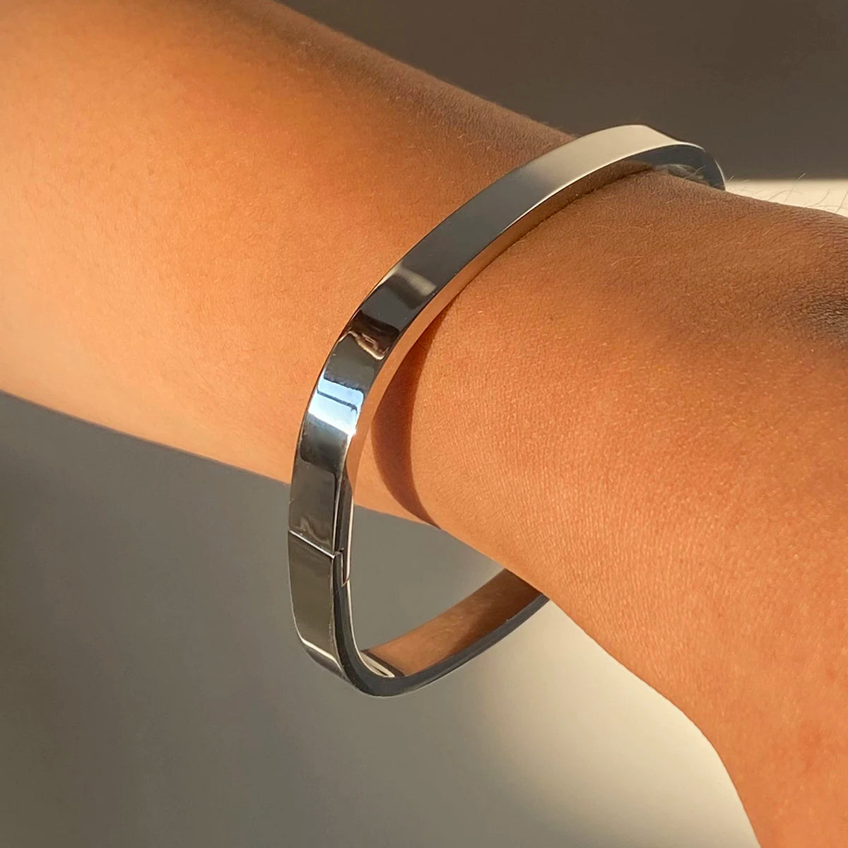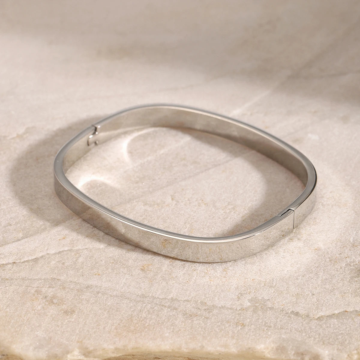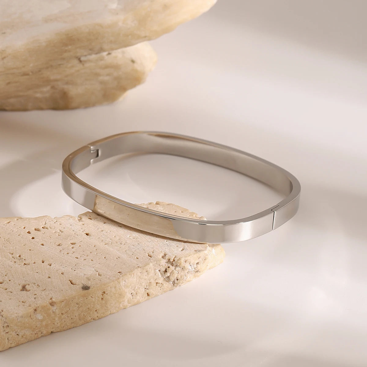 ステンレス304 低ニッケル 水に濡れても錆びにくい ブレスレット スクエア バングル【YJ02784】