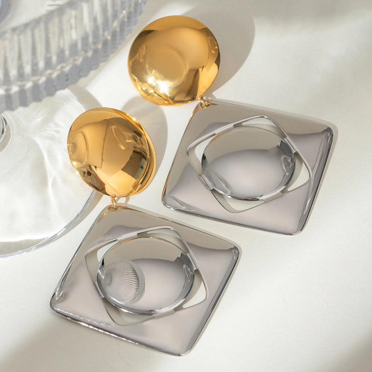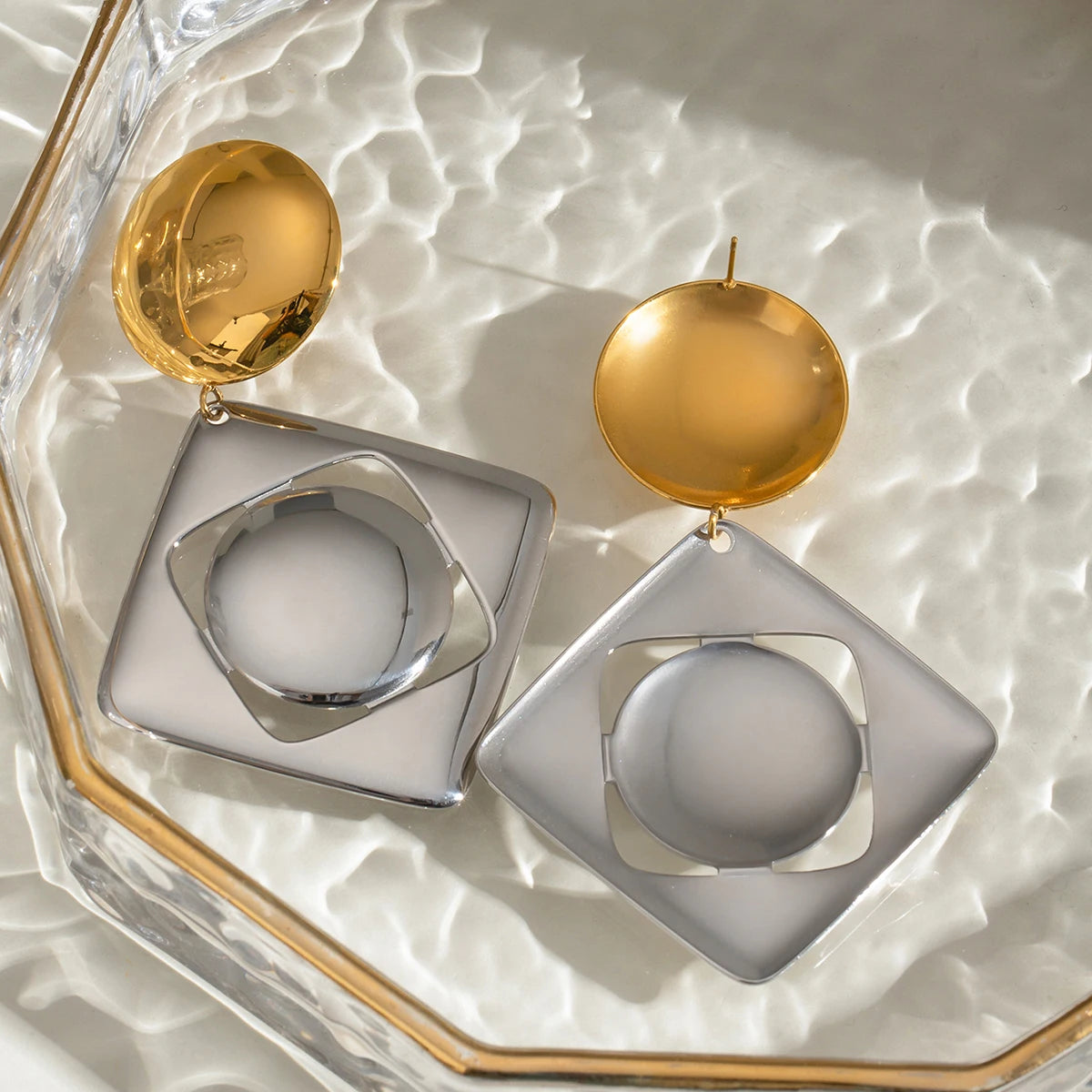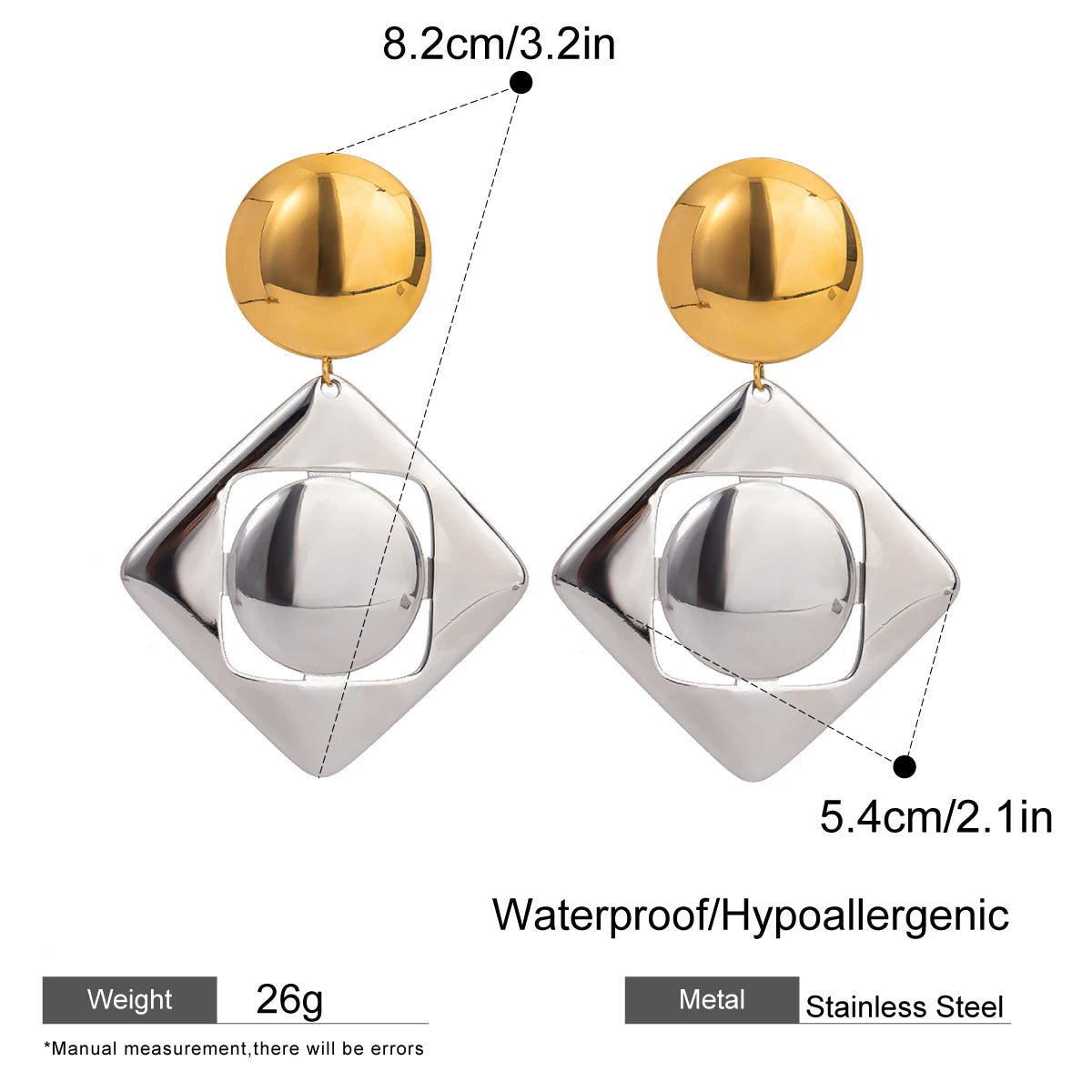 ステンレス304 低ニッケル 水に濡れても錆びにくい 18Kゴールドメッキ ピアス スクエア ボール【YJ02819】