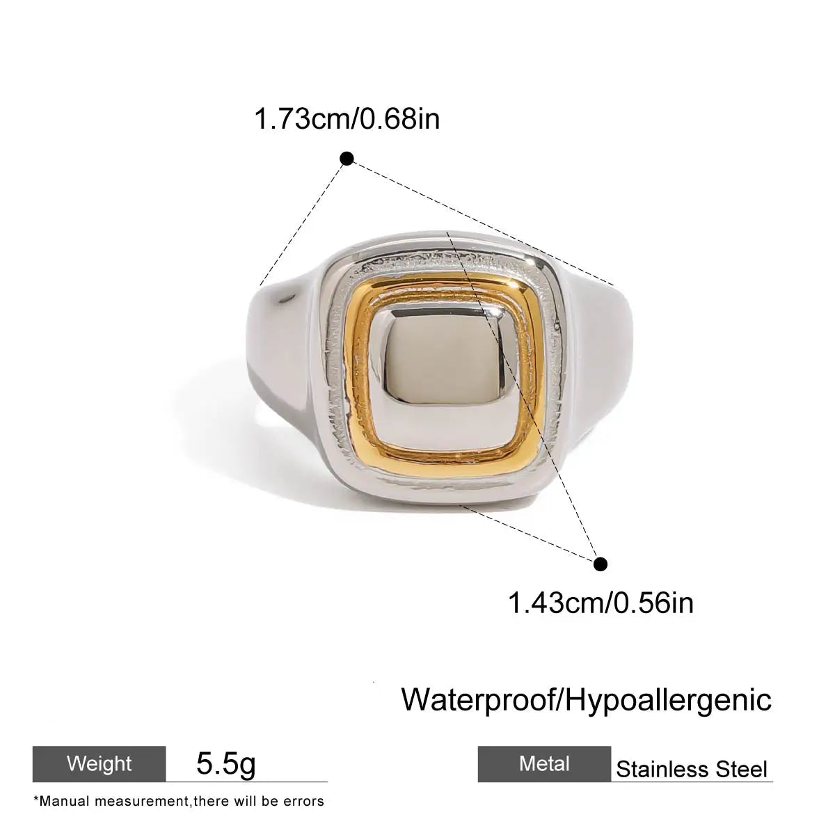 ステンレス304 低ニッケル 水に濡れても錆びにくい 18Kゴールドメッキ リング スクエア 【YJ02902】