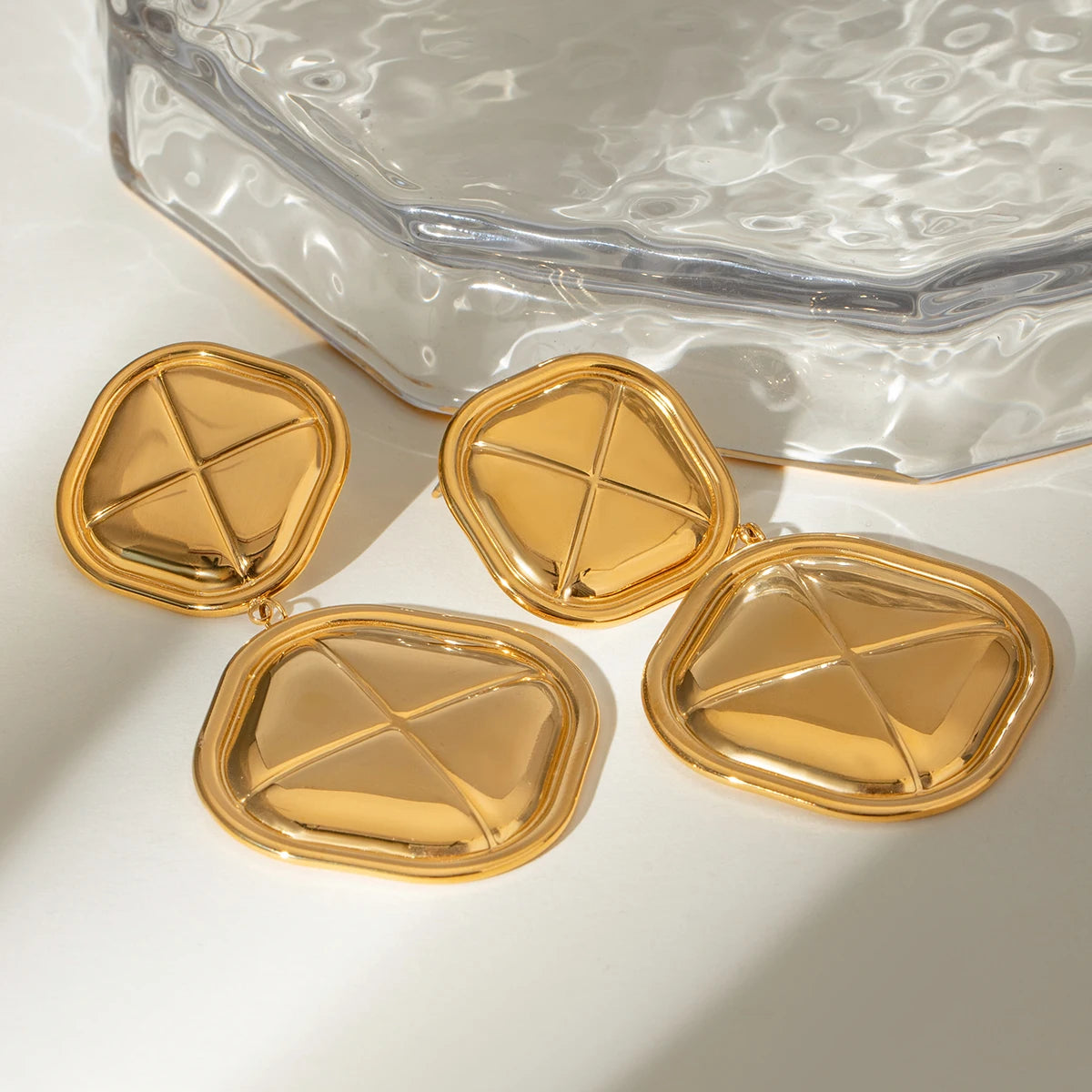 ステンレス304 低ニッケル 水に濡れても錆びにくい 18Kゴールドメッキ ピアス スクエア 【YJ02973】