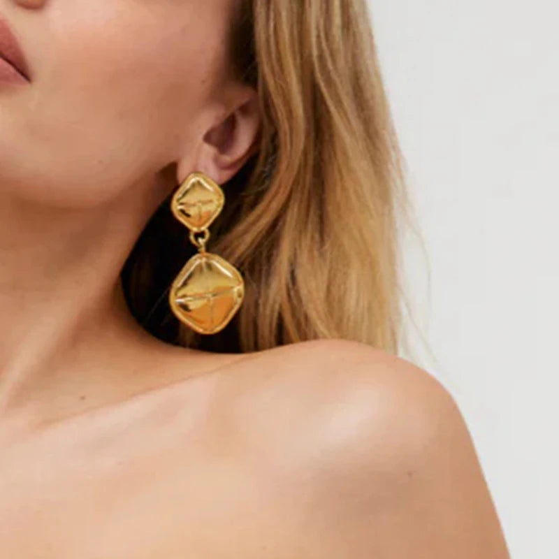 - ピアスのポスト部分は素材の特性上、キャッチがきつく感じられる場合や、スムーズに取り外せないことがありますが、これは不良品ではありませんのでご了承ください。特に新品時はゴールドメッキコーティングの厚みにより、やや固めに感じることがございます。無理に力を加えるとポストの曲がりや破損につながる可能性があるため、優しくゆっくりと着脱いただくことをおすすめします。