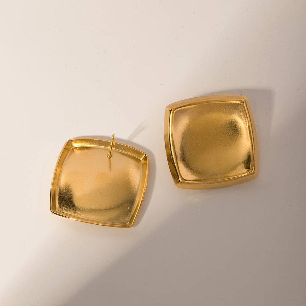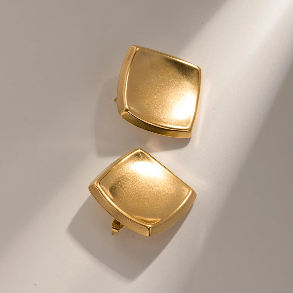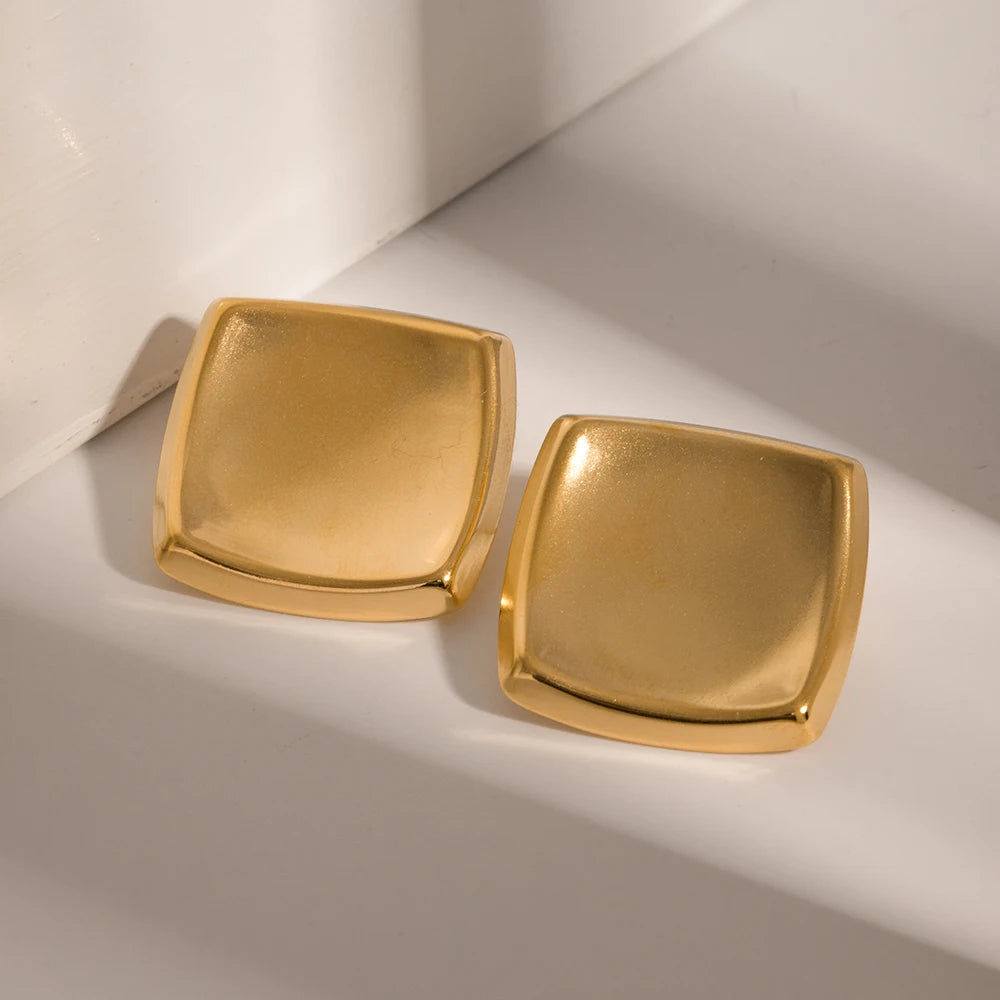 ステンレス304 低ニッケル 水に濡れても錆びにくい 18Kゴールドメッキ ピアス スクエア 【YJ03102】