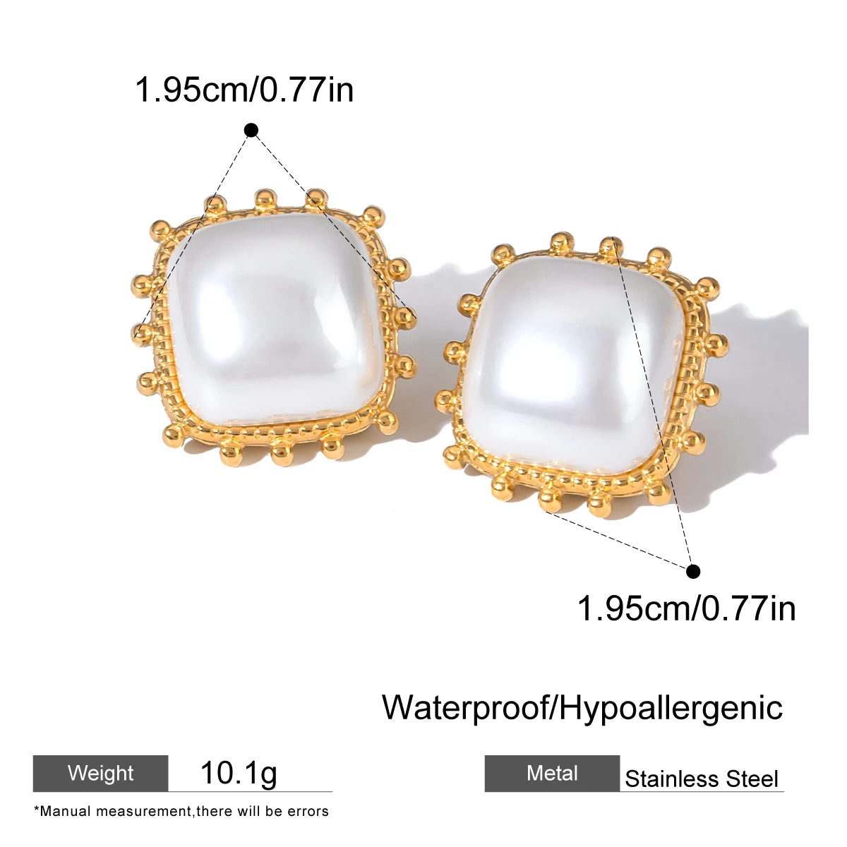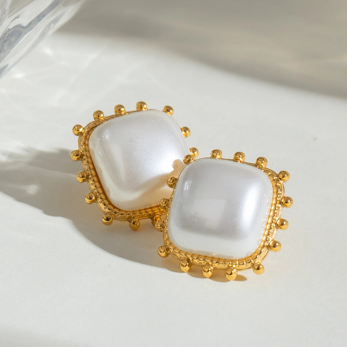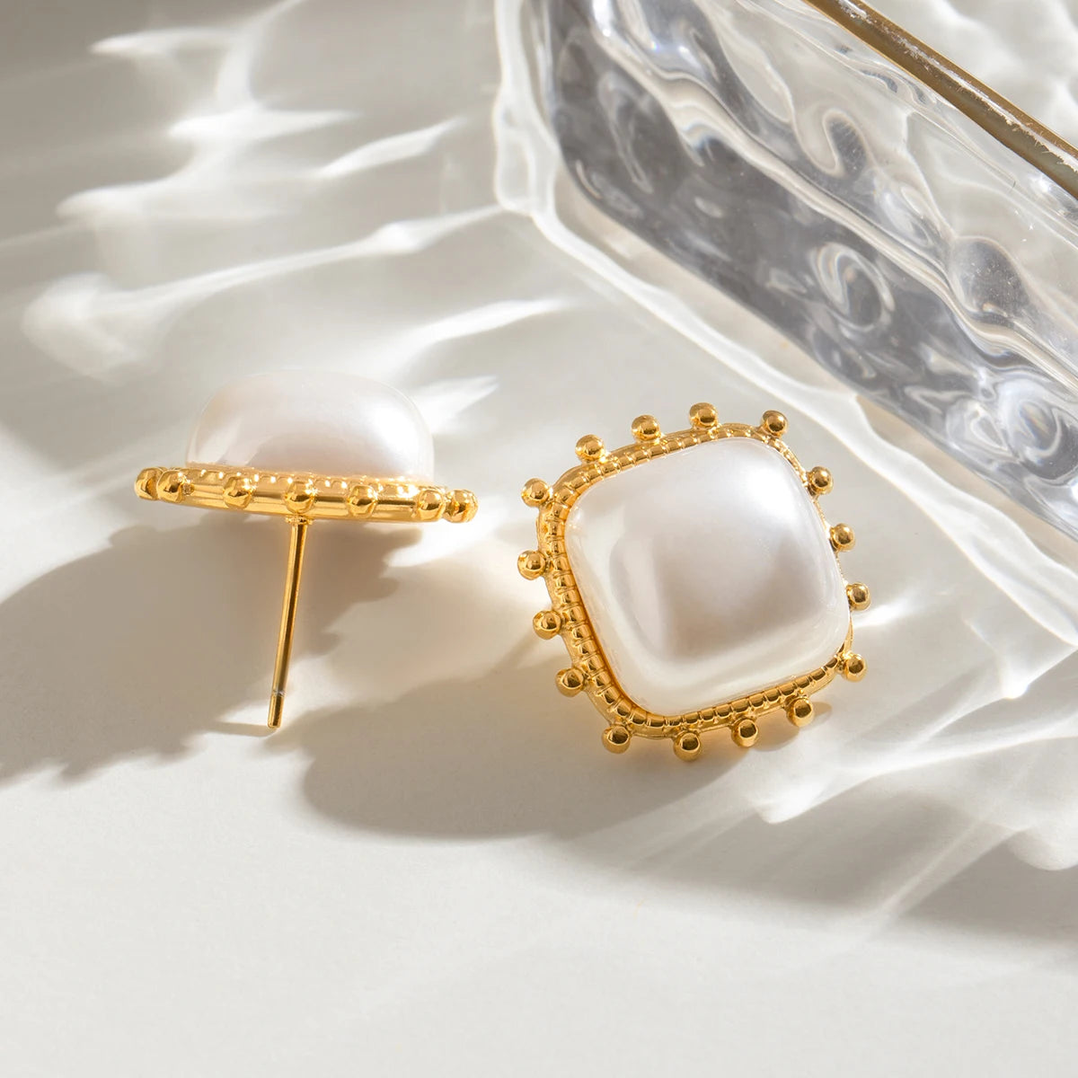 ステンレス304 低ニッケル 水に濡れても錆びにくい 18Kゴールドメッキ ピアス パール スクエア【YJ03157】