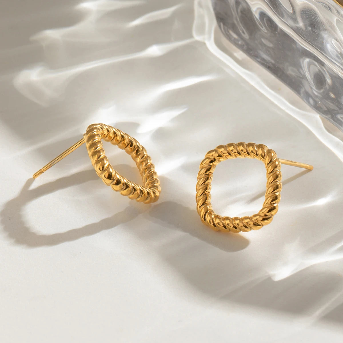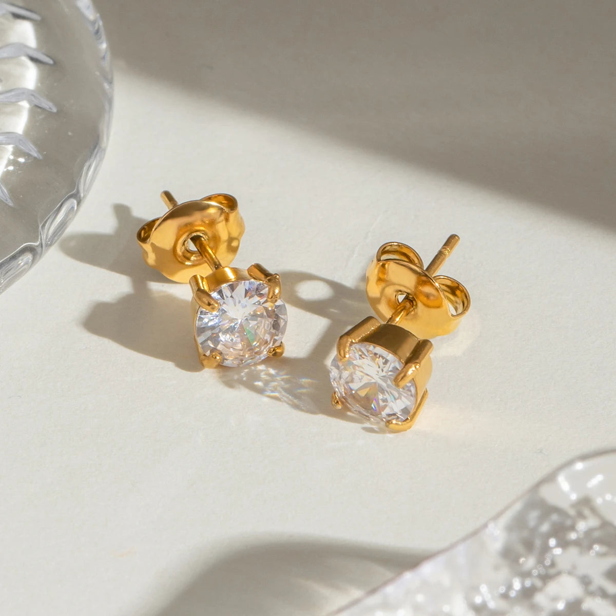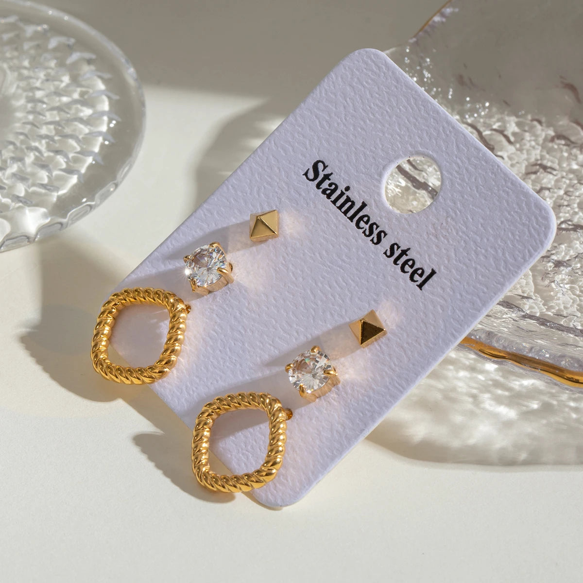 ステンレス304 低ニッケル 水に濡れても錆びにくい 18Kゴールドメッキ ピアス スクエア ジルコニア 3点セット【YJ03181】