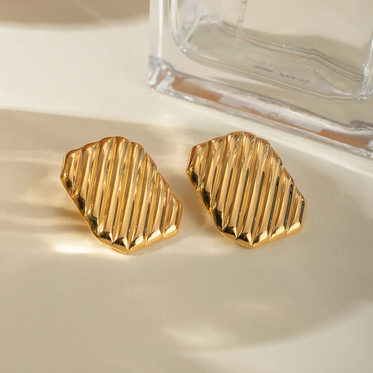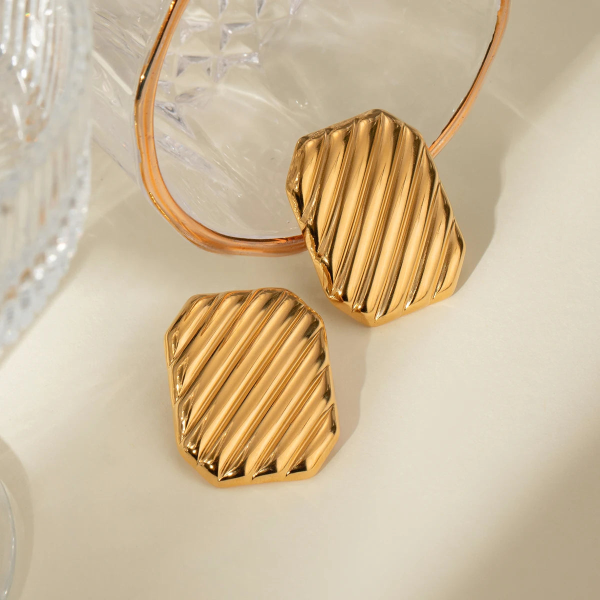 ステンレス304 低ニッケル 水に濡れても錆びにくい 18Kゴールドメッキ ピアス スクエア【YJ03699】