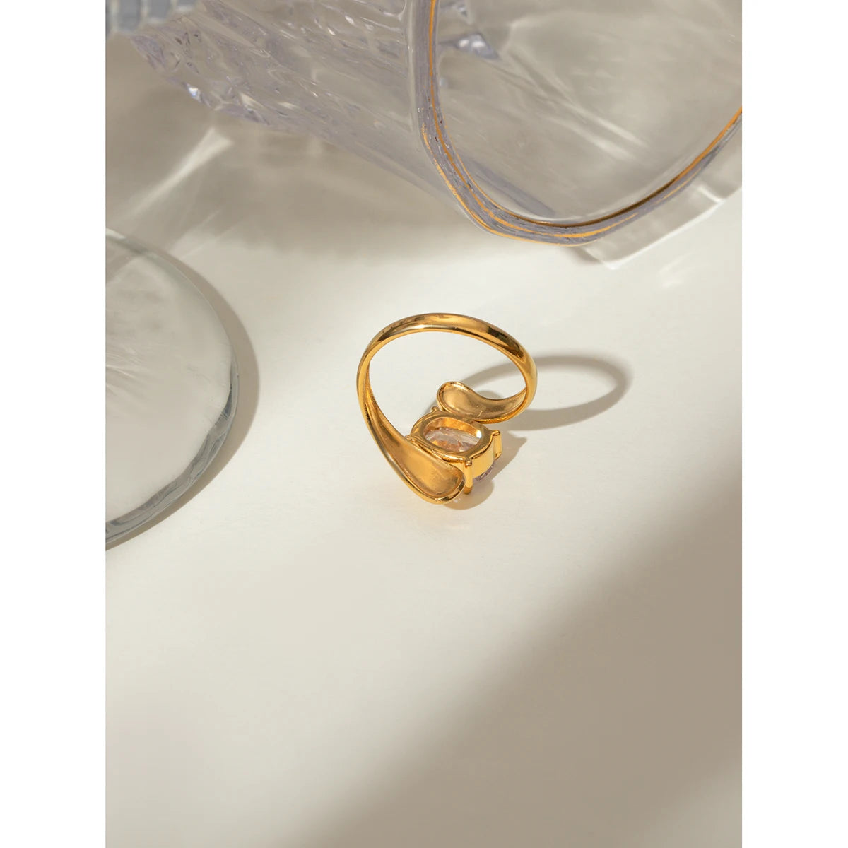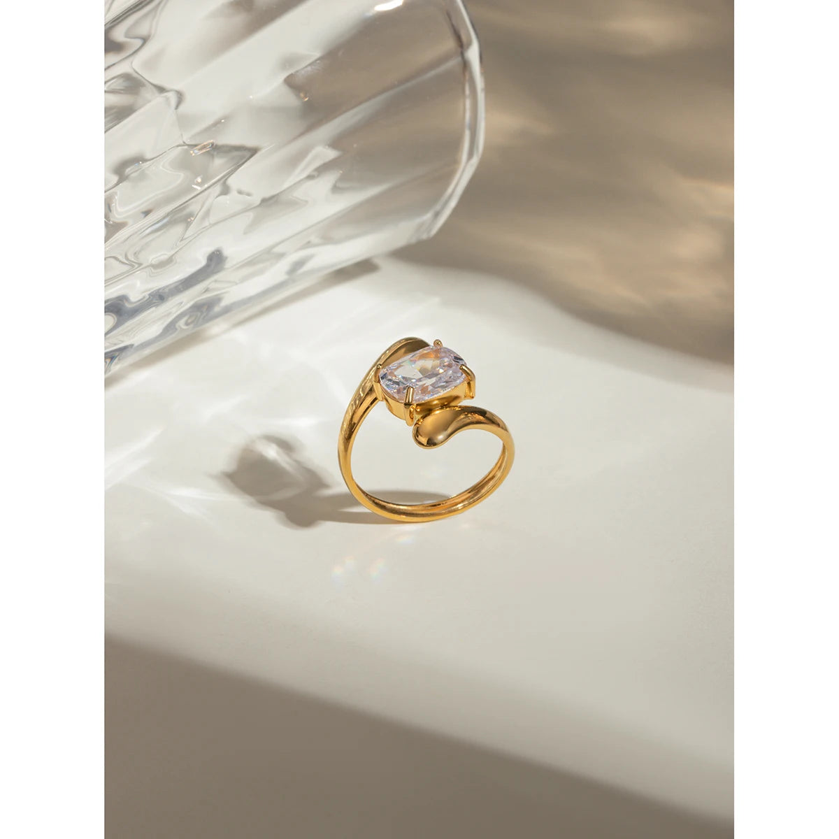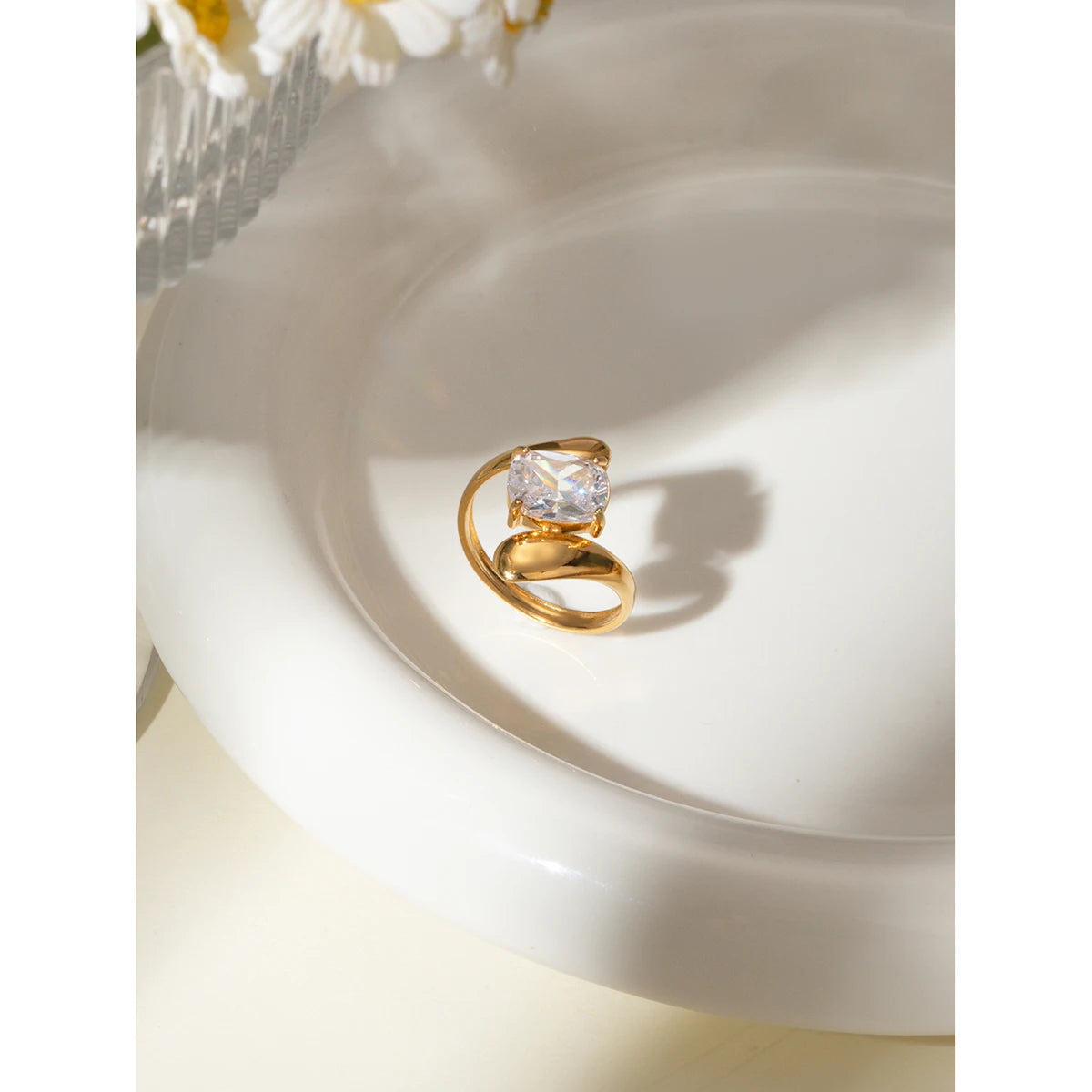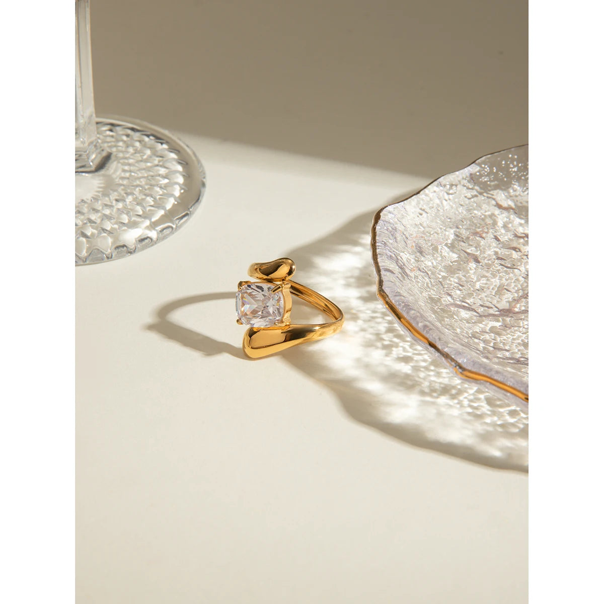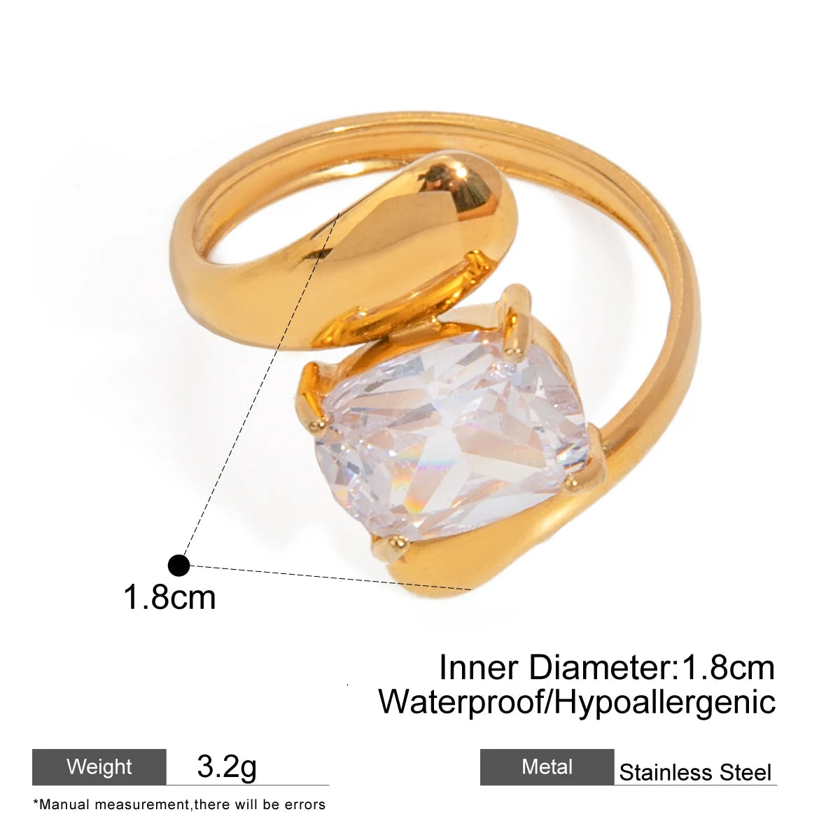 ステンレス304 低ニッケル 水に濡れても錆びにくい 18Kゴールドメッキ リング スクエア ジルコニア 【YJ03853】