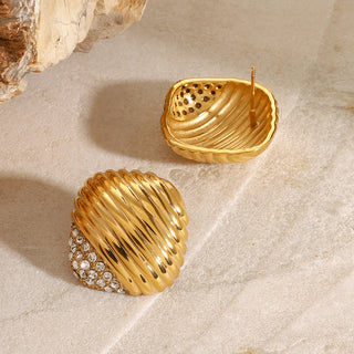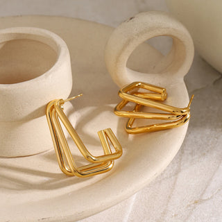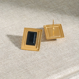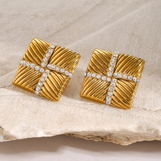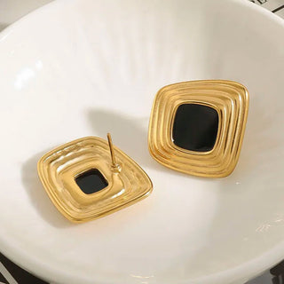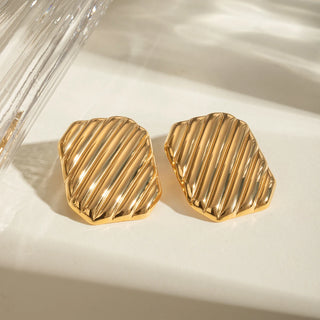 ステンレス304 低ニッケル 水に濡れても錆びにくい 18Kゴールドメッキ ピアス チャンキー スクエア 【YJ02112】