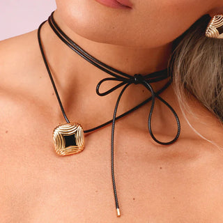 ステンレス304 低ニッケル 水に濡れても錆びにくい 18Kゴールドメッキ ネックレス 2連 スクエア【YJ03257】