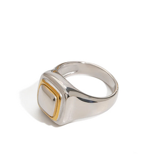 ステンレス304 低ニッケル 水に濡れても錆びにくい 18Kゴールドメッキ リング チャンキー スクエア 【YJ02111】
