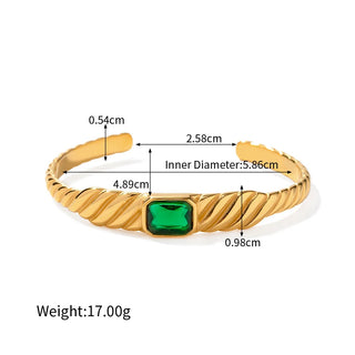 ステンレス304 低ニッケル 水に濡れても錆びにくい 18Kゴールドメッキ ブレスレット スクエア ジルコニア 【YJ02674】