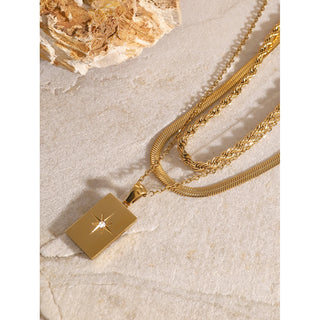 ステンレス304 低ニッケル 水に濡れても錆びにくい 18Kゴールドメッキ ネックレス スクエア 3連 【YJ03254】