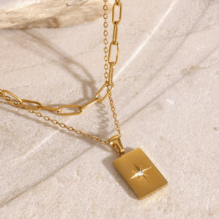 ステンレス304 低ニッケル 水に濡れても錆びにくい 18Kゴールドメッキ ネックレス スクエア スター 星ジルコニア 【YJ02369】