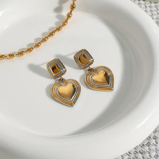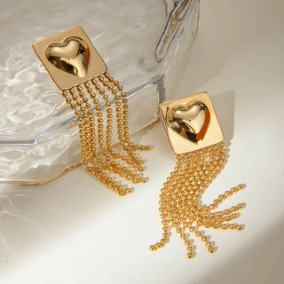 ステンレス304 低ニッケル 水に濡れても錆びにくい 18Kゴールドメッキ ピアス タッセル スクエア ハート 【YJ02124】