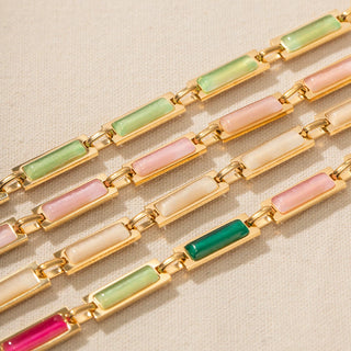 ステンレス304 低ニッケル 水に濡れても錆びにくい 18Kゴールドメッキ ブレスレット チェーン スクエア ジルコニア 【YJ03500】