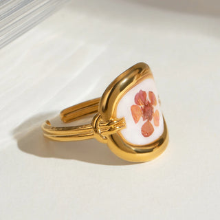 ステンレス304 低ニッケル 水に濡れても錆びにくい 18Kゴールドメッキ リング スクエア フラワー 花 レジン オーバル【YJ03438】
