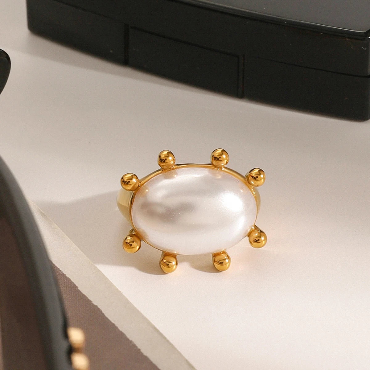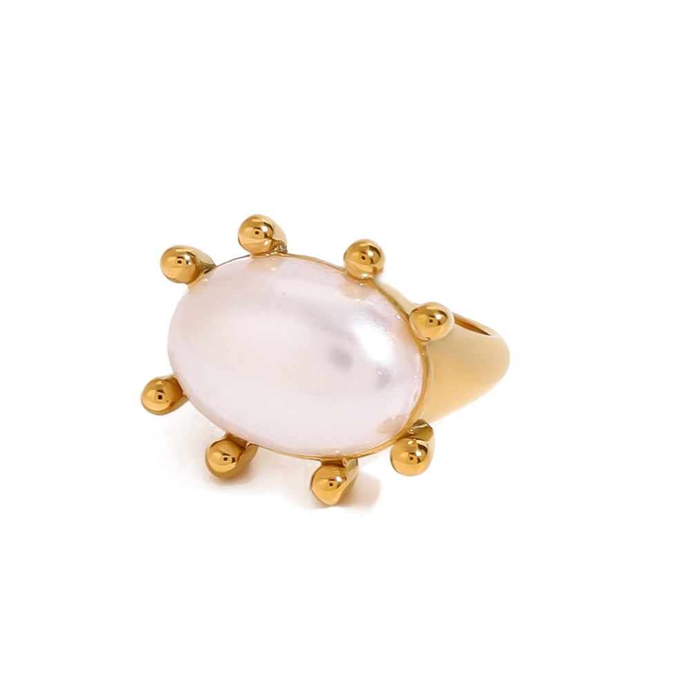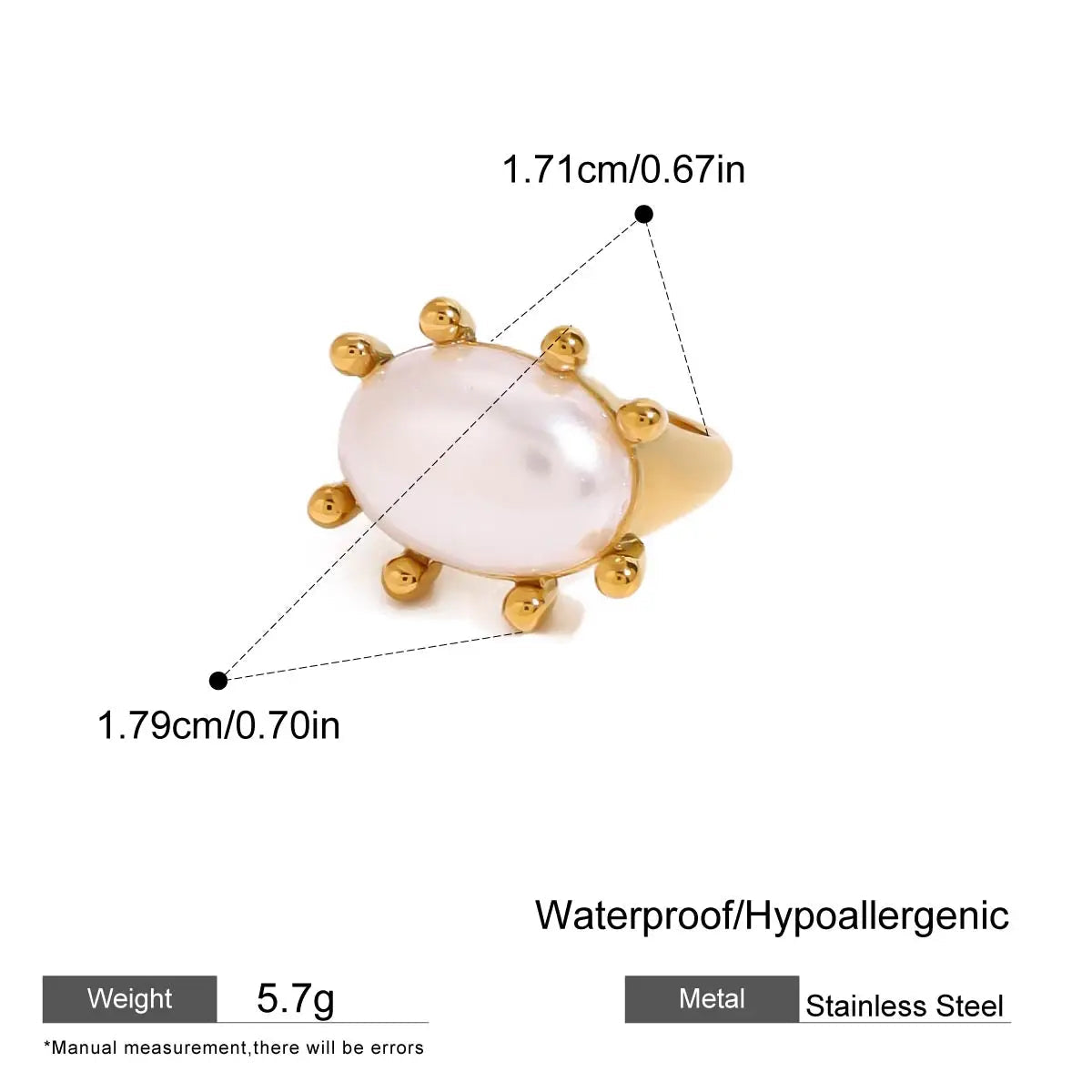 ステンレス304 低ニッケル 水に濡れても錆びにくい 18Kゴールドメッキ リング パール 【YJ02929】