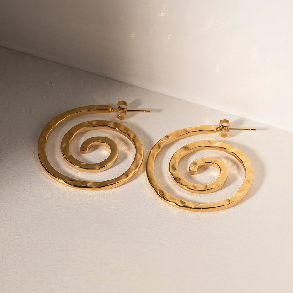 ステンレス304 低ニッケル 水に濡れても錆びにくい 18Kゴールドメッキ ピアス スパイラル 【YJ02940】