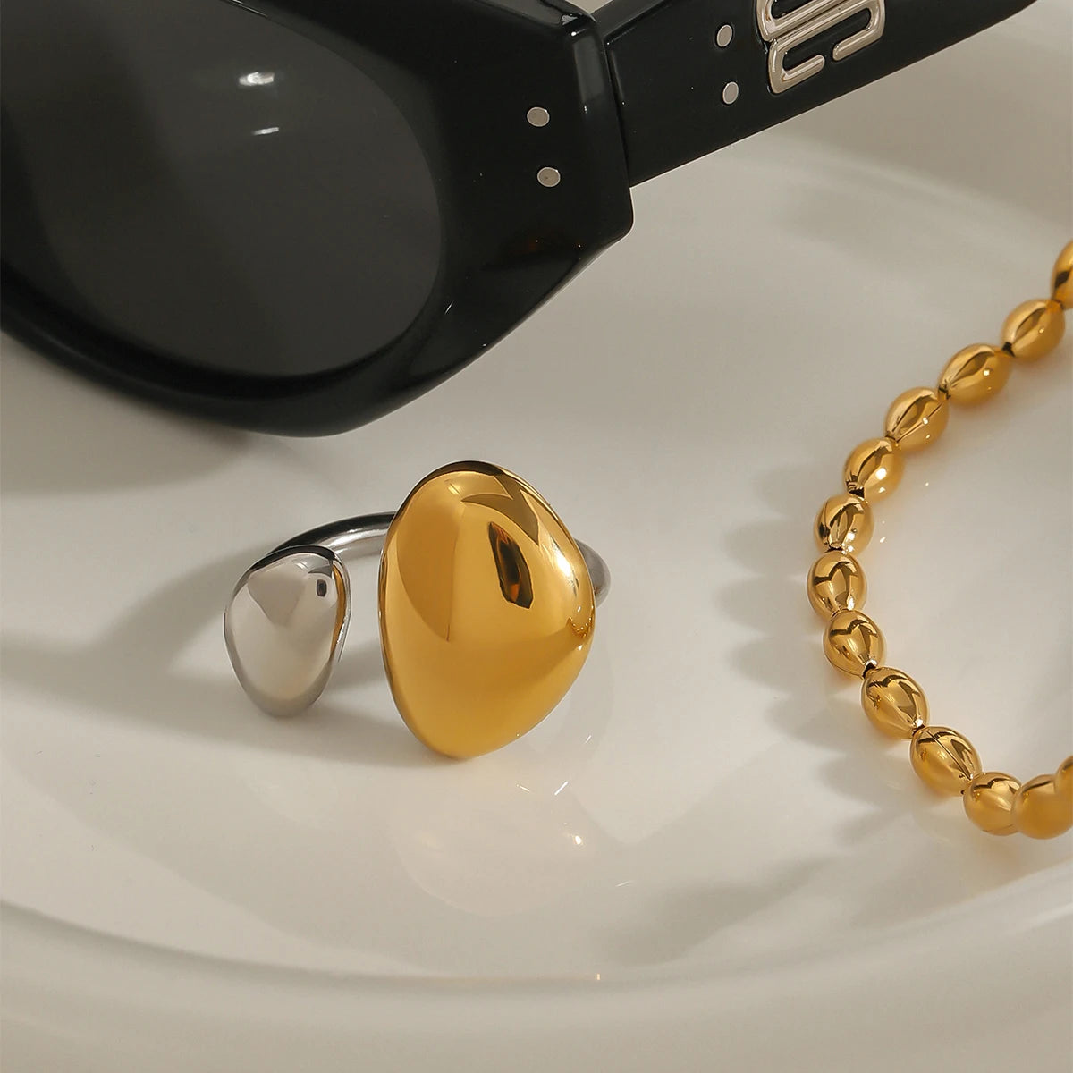 ステンレス304 低ニッケル 水に濡れても錆びにくい 18Kゴールドメッキ リング 【YJ02988】