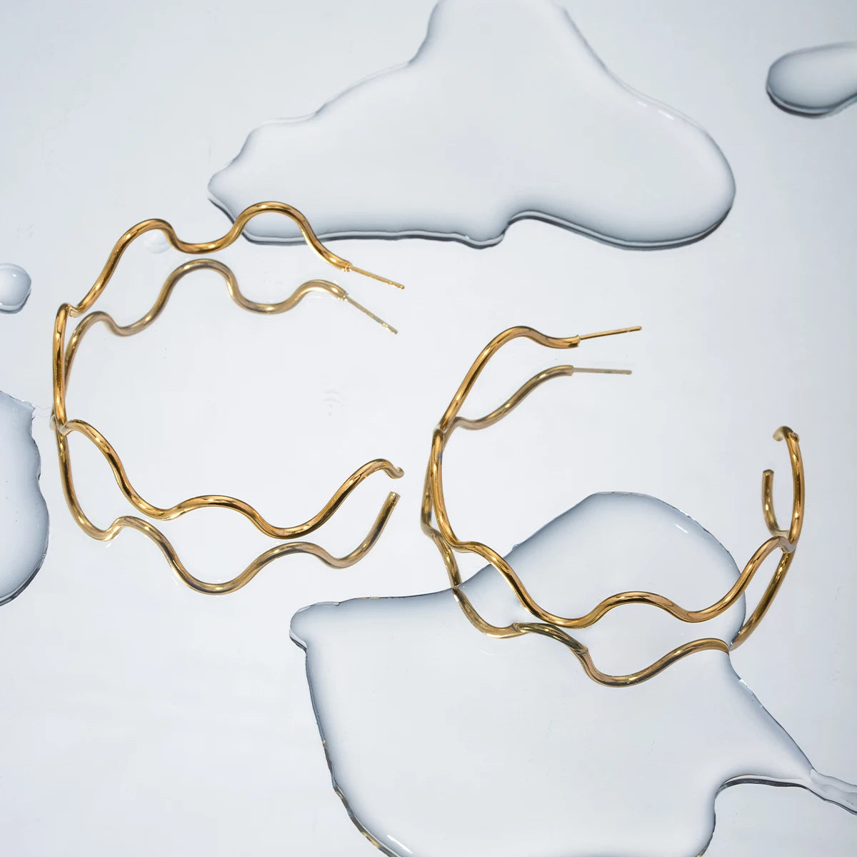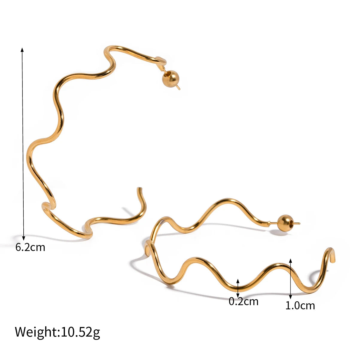 ステンレス304 低ニッケル 水に濡れても錆びにくい 18Kゴールドメッキ ピアス ウェーブ フープ 【YJ02998】