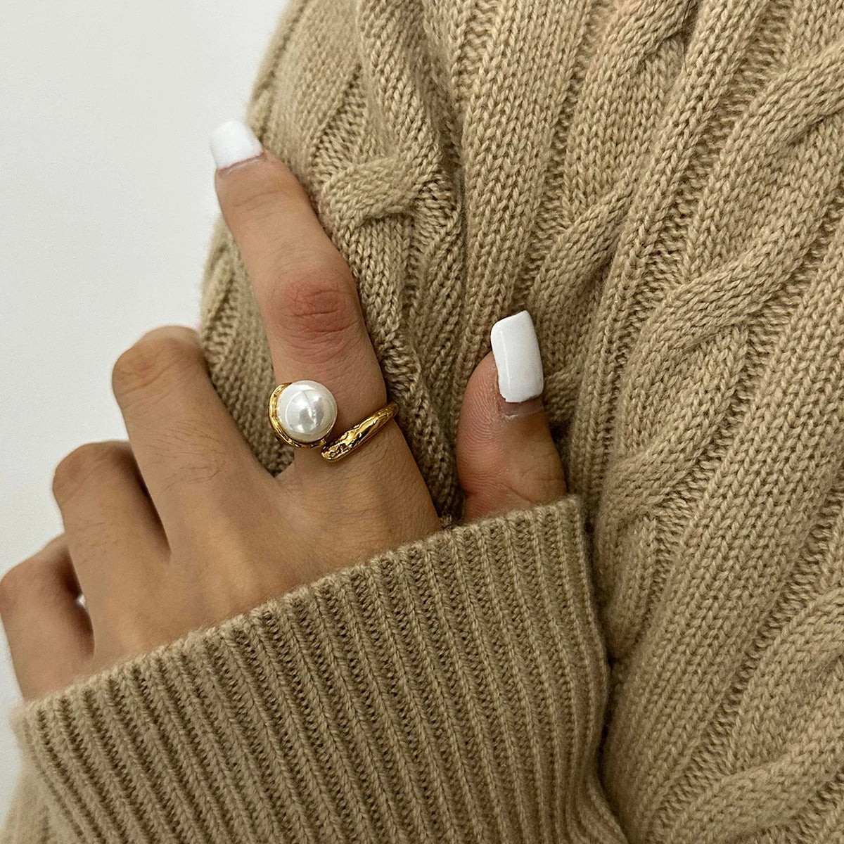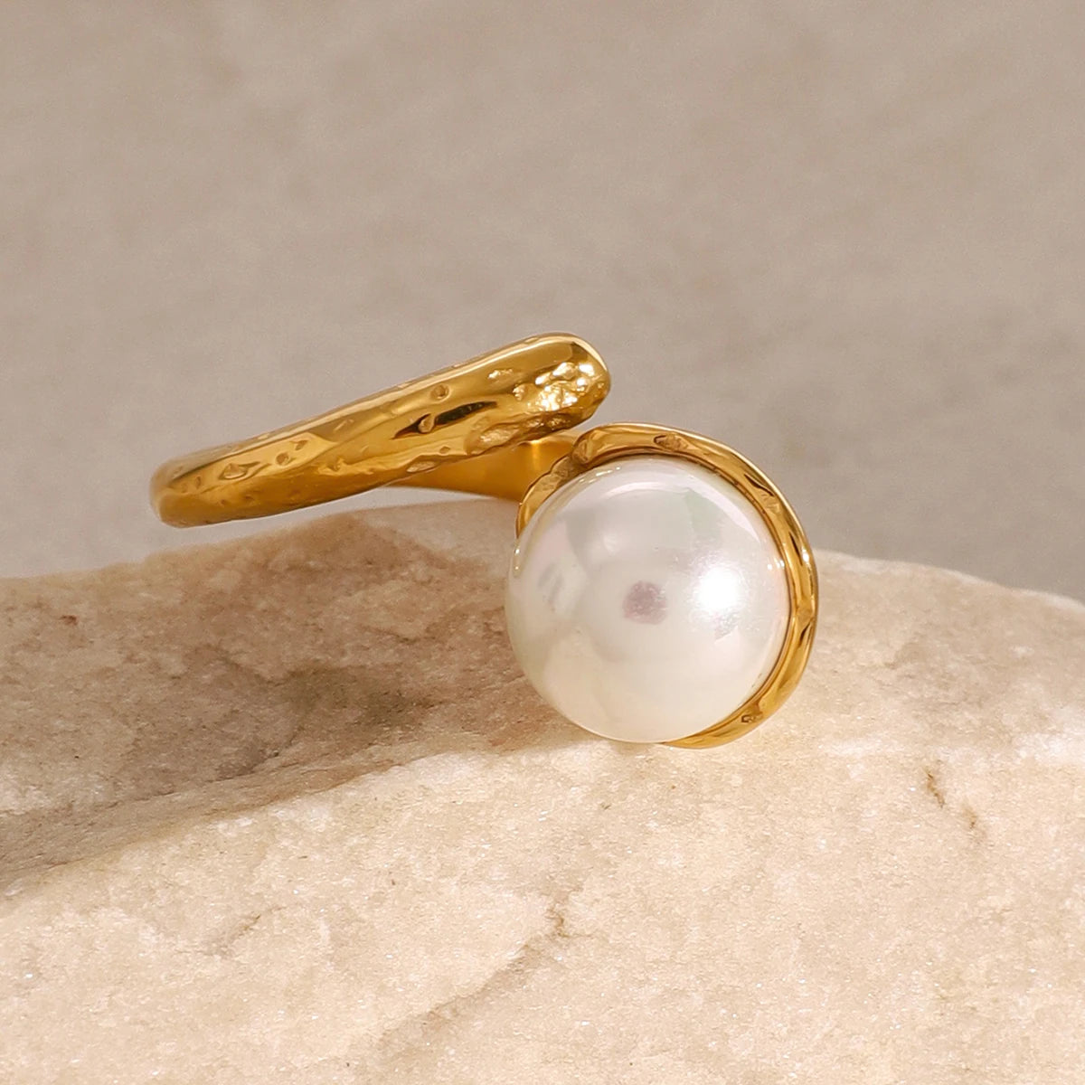 ステンレス304 低ニッケル 水に濡れても錆びにくい 18Kゴールドメッキ リング パール 【YJ03210】