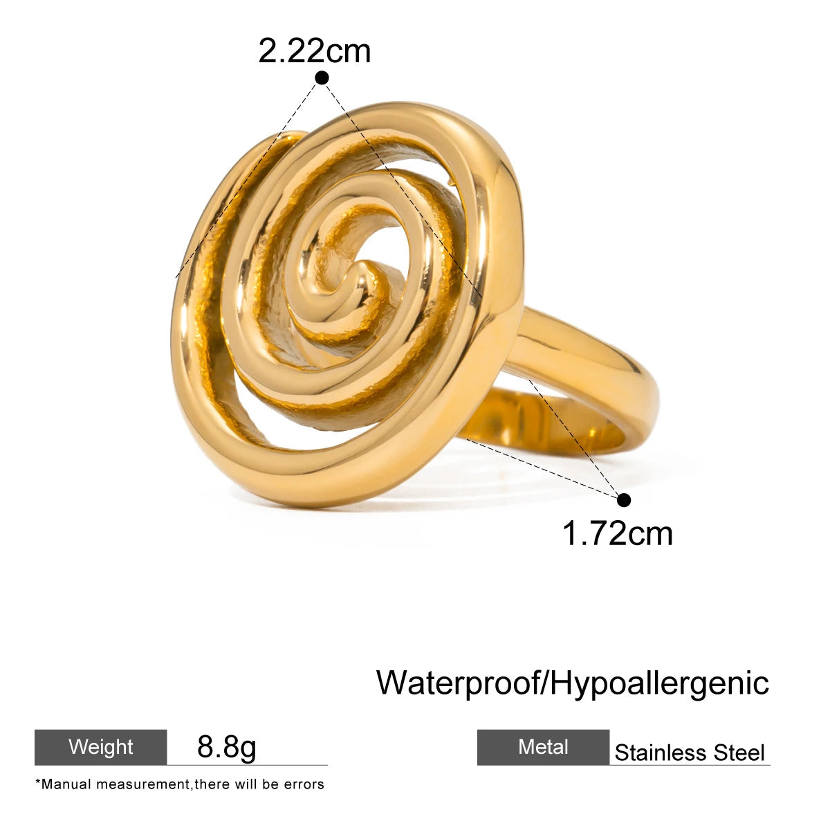 ステンレス304 低ニッケル 水に濡れても錆びにくい 18Kゴールドメッキ リング スパイラル【YJ03211】