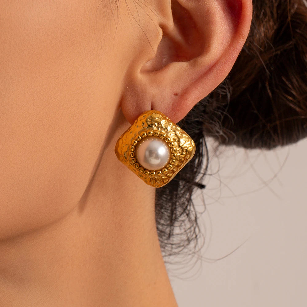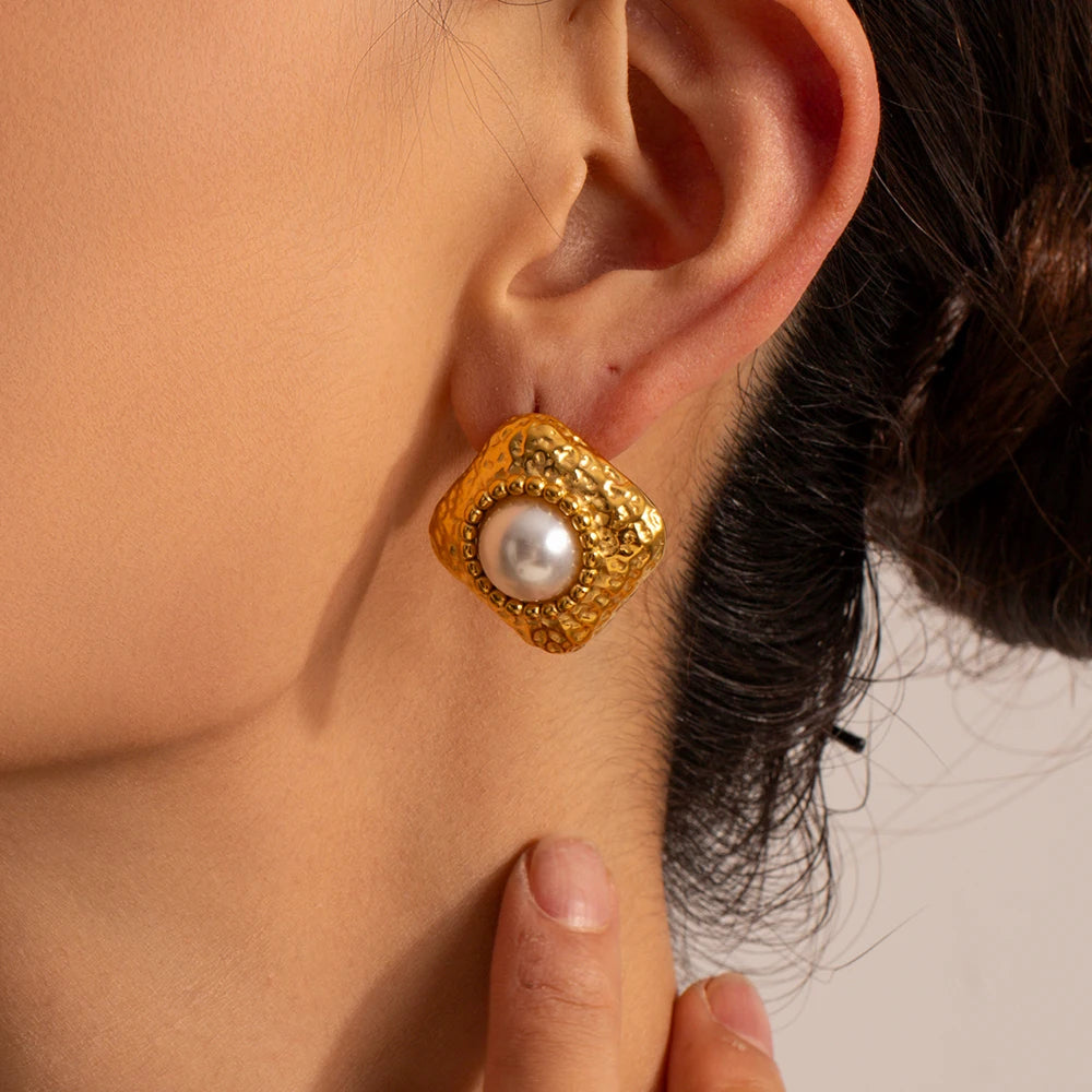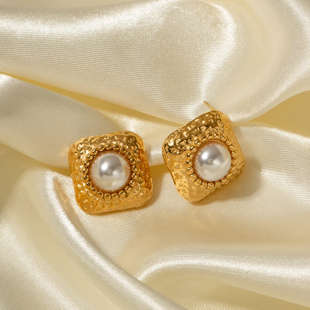 ステンレス304 低ニッケル 水に濡れても錆びにくい 18Kゴールドメッキ ピアス パール 【YJ03218】