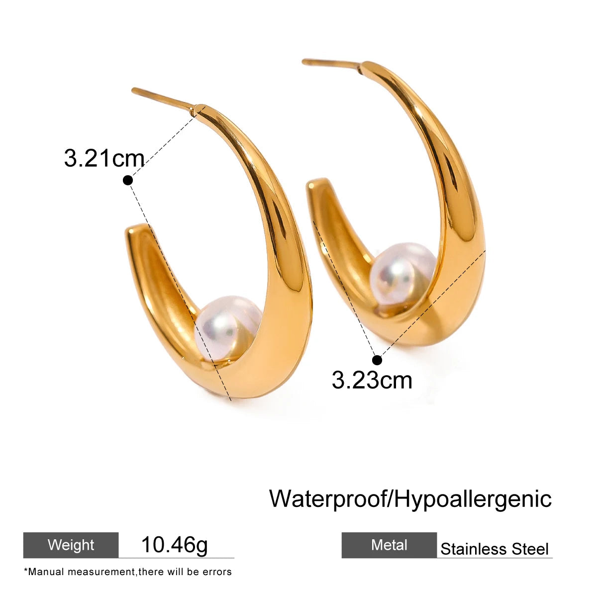 ステンレス304 低ニッケル 水に濡れても錆びにくい 18Kゴールドメッキ ピアス チャンキー フープ パール【YJ03224】