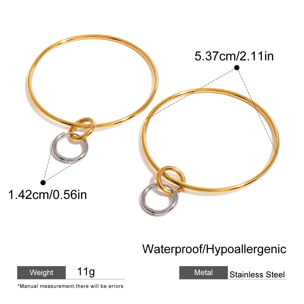 ステンレス304 低ニッケル 水に濡れても錆びにくい 18Kゴールドメッキ フープ ピアス 【YJ03300】