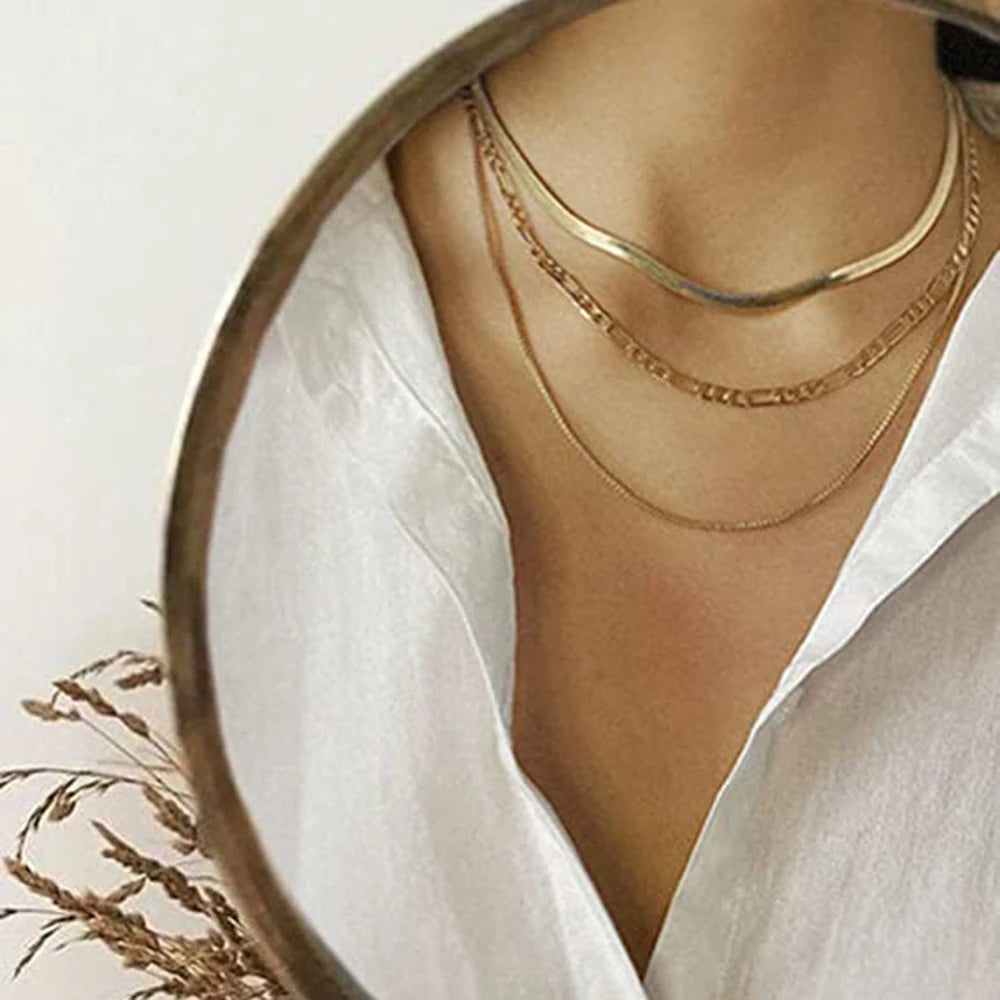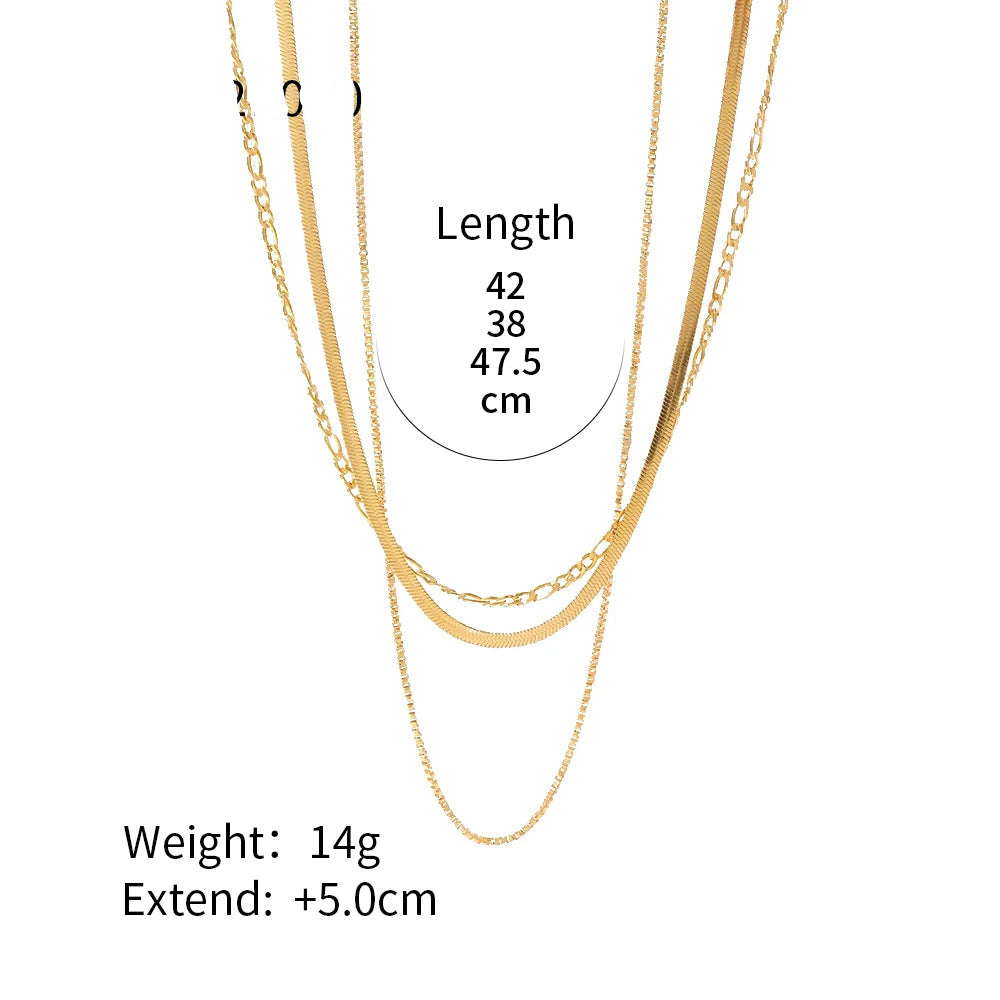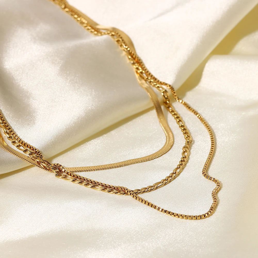 ステンレス304 低ニッケル 水に濡れても錆びにくい 18Kゴールドメッキ ネックレス 3連 チェーン スネークチェーン 【YJ03301】