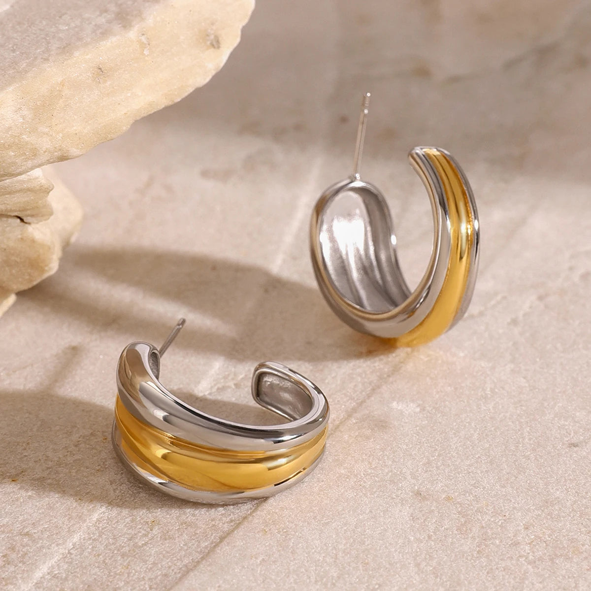 ステンレス304 低ニッケル 水に濡れても錆びにくい 18Kゴールドメッキ ピアス ツイスト 【YJ03309】