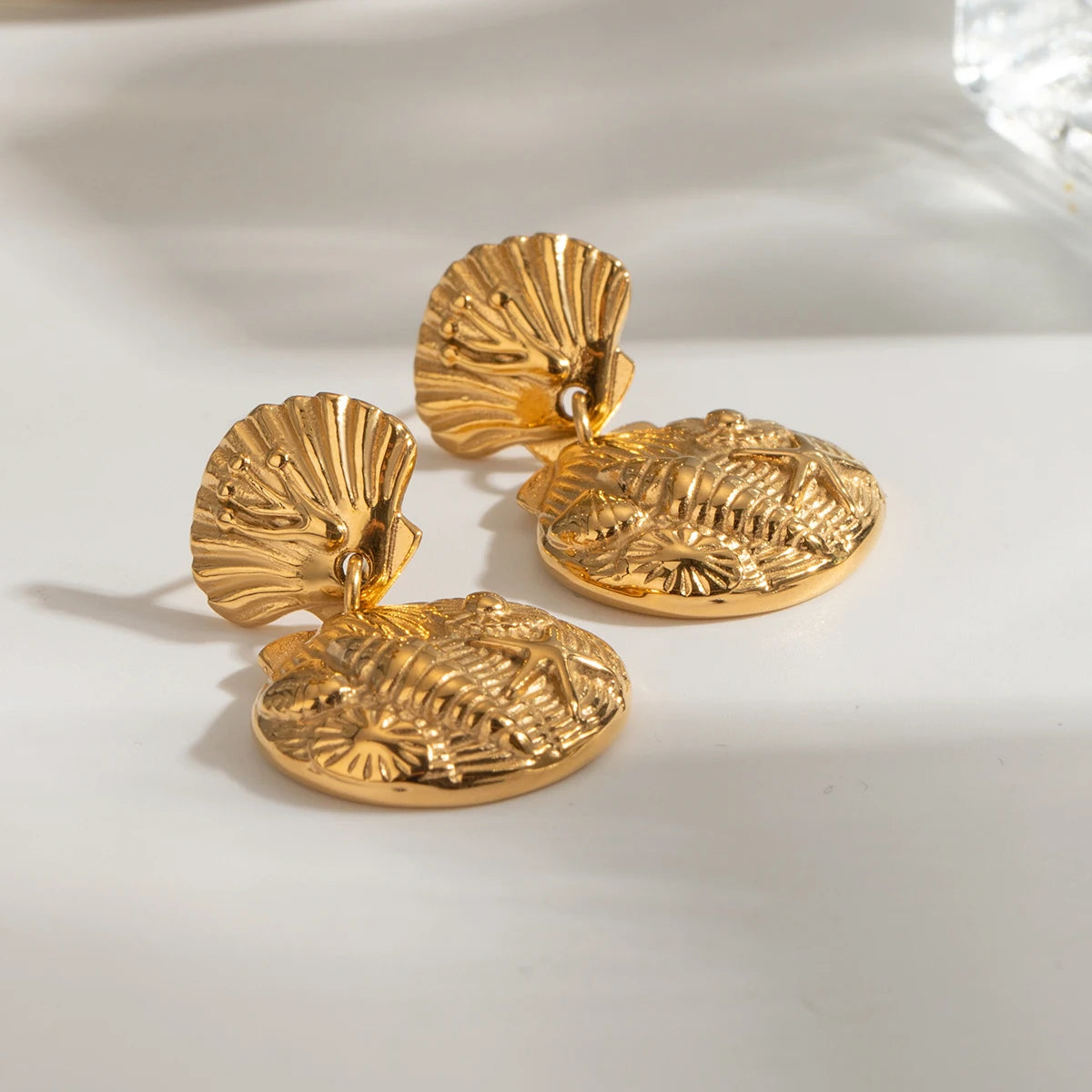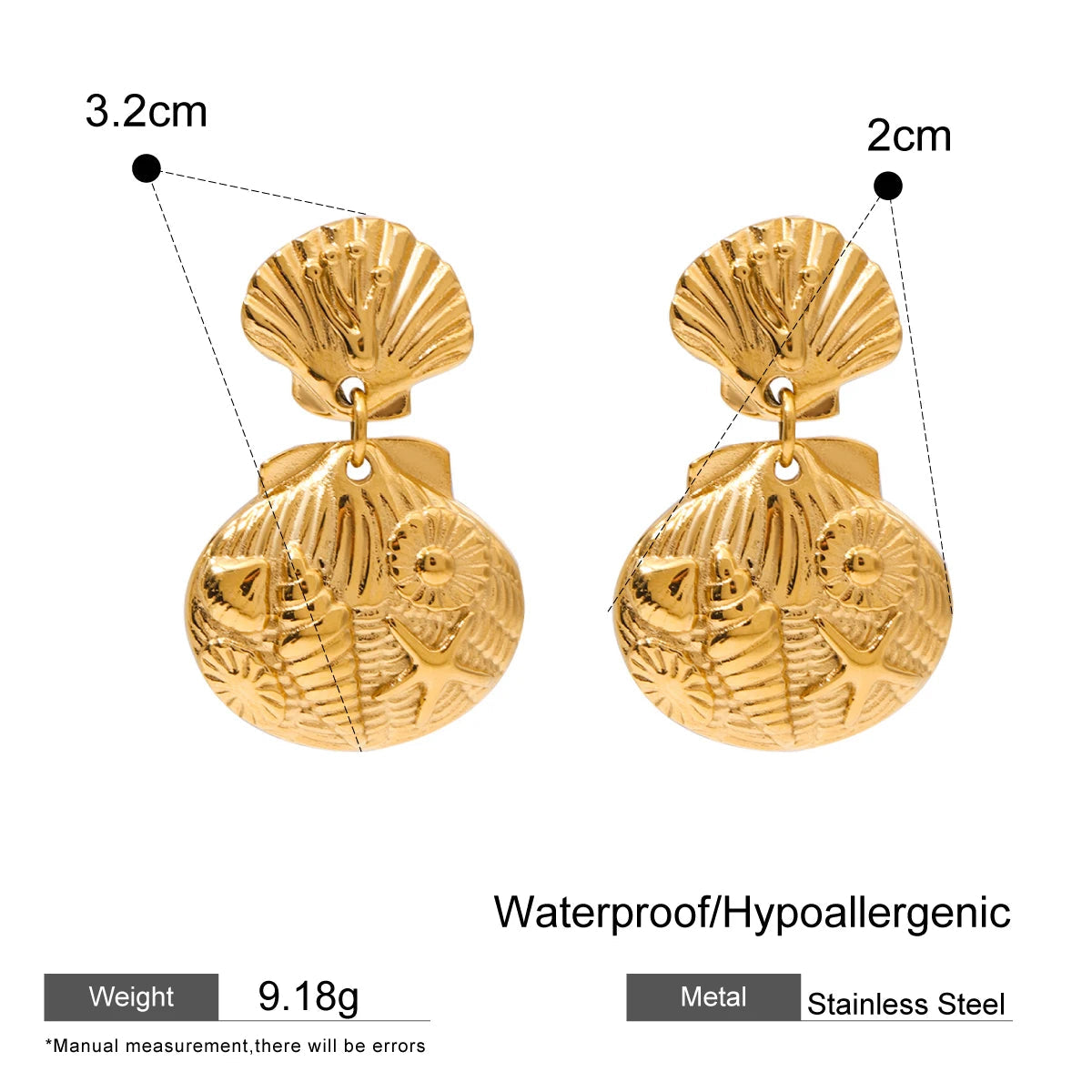 ステンレス304 低ニッケル 水に濡れても錆びにくい 18Kゴールドメッキ ピアス シェル 貝殻 【YJ03334】