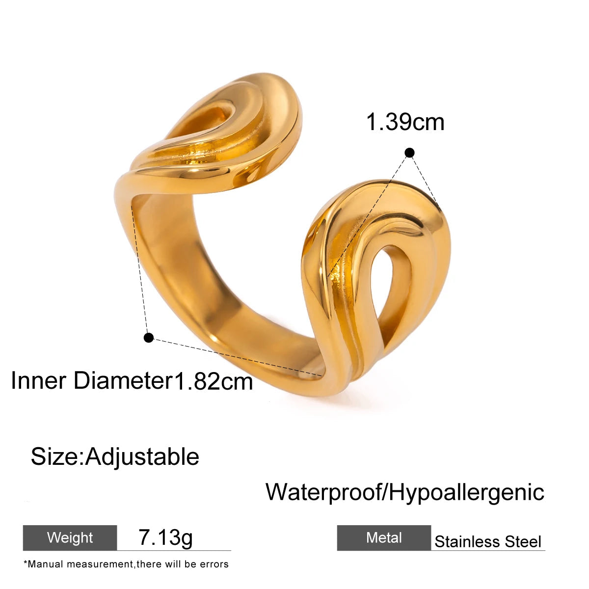 ステンレス304 低ニッケル 水に濡れても錆びにくい 18Kゴールドメッキ リング 【YJ03359】
