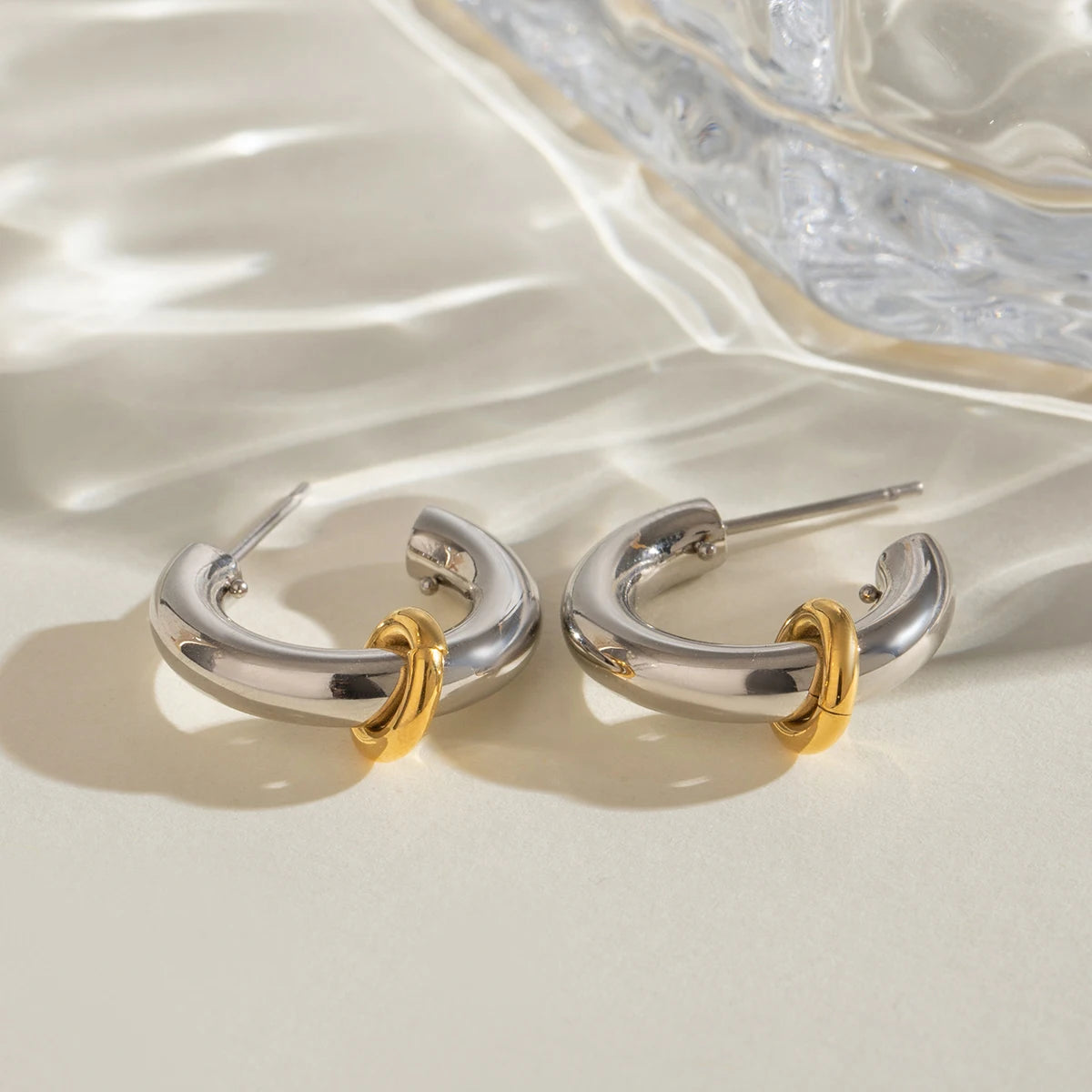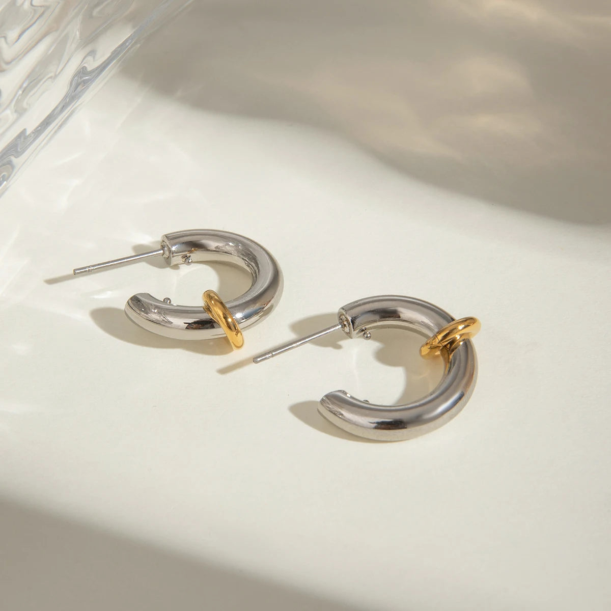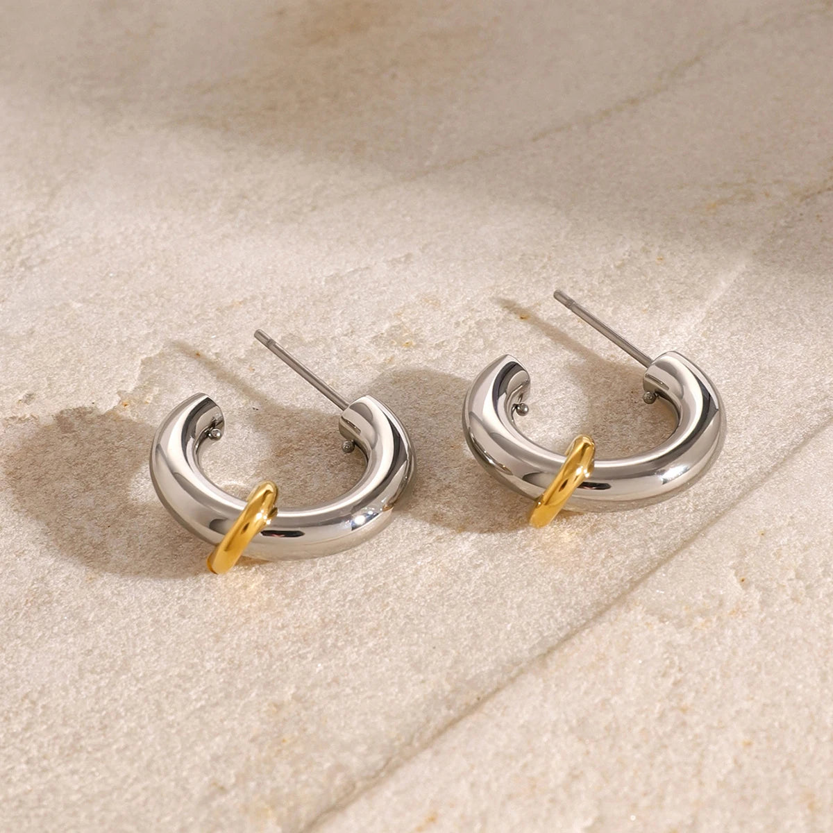 ステンレス304 低ニッケル 水に濡れても錆びにくい 18Kゴールドメッキ ピアス フープ 【YJ03364】