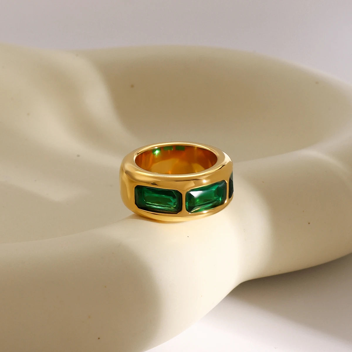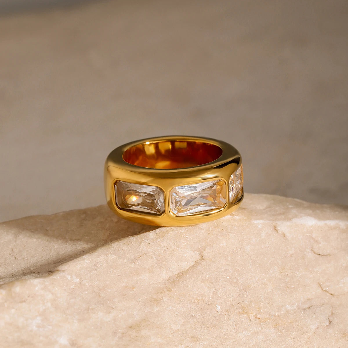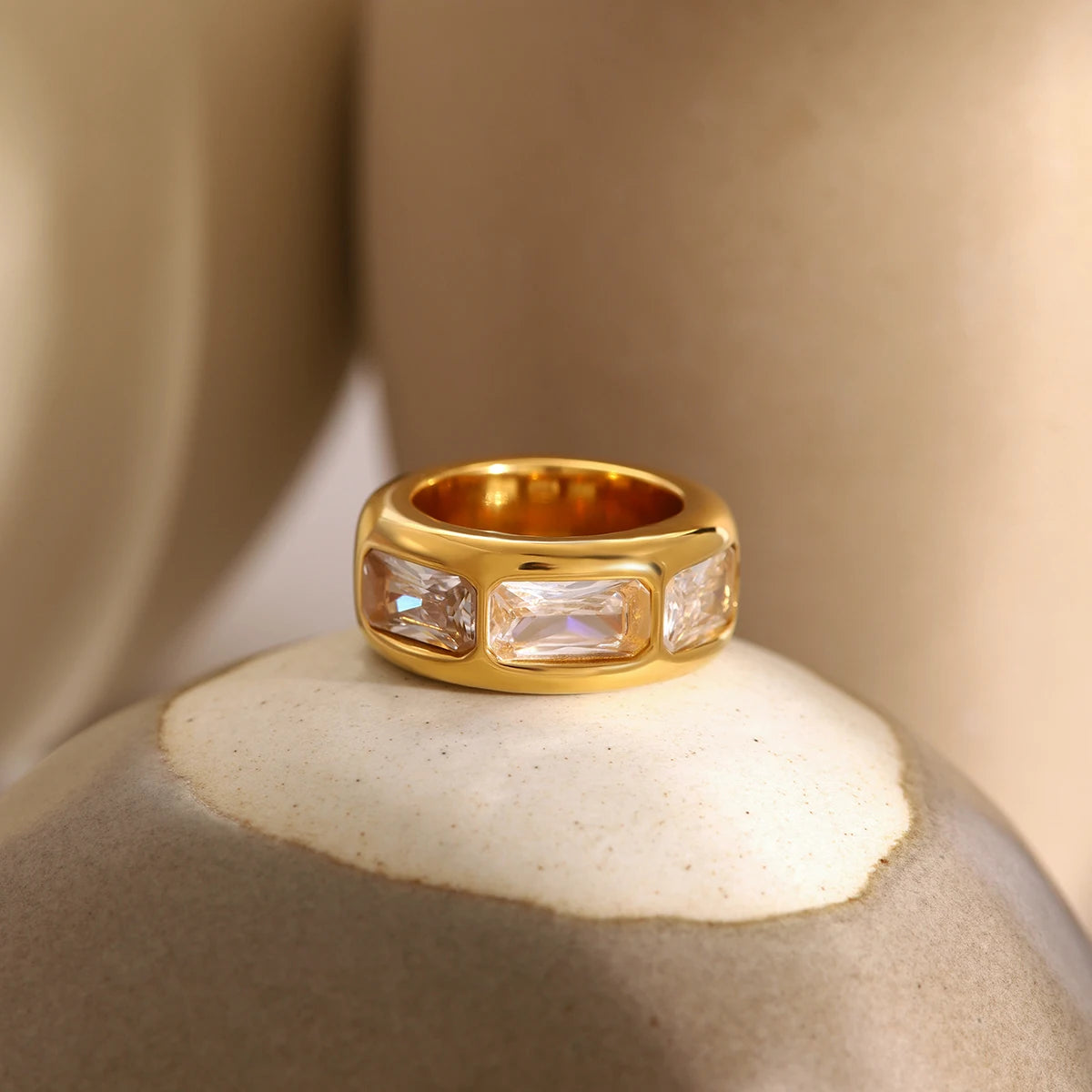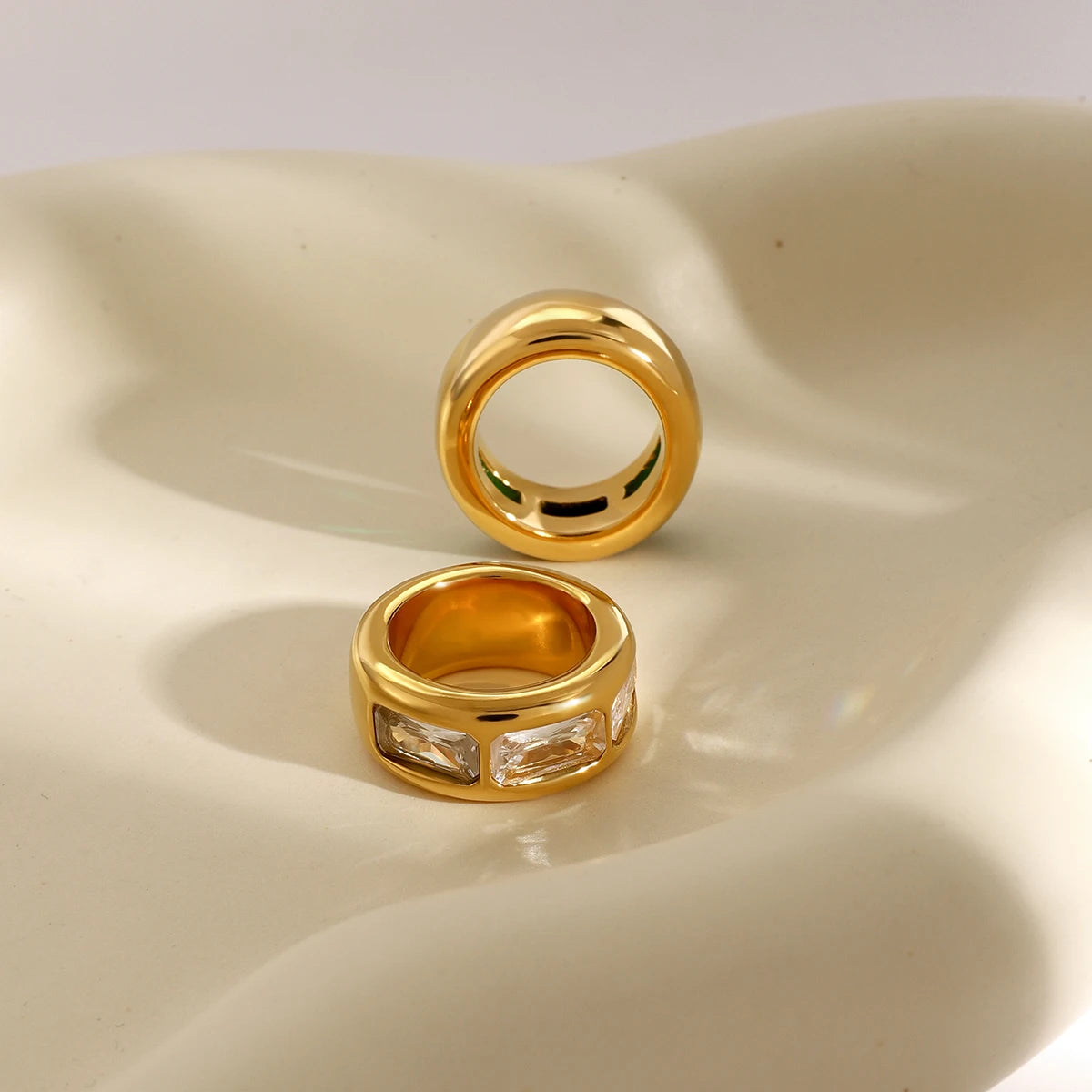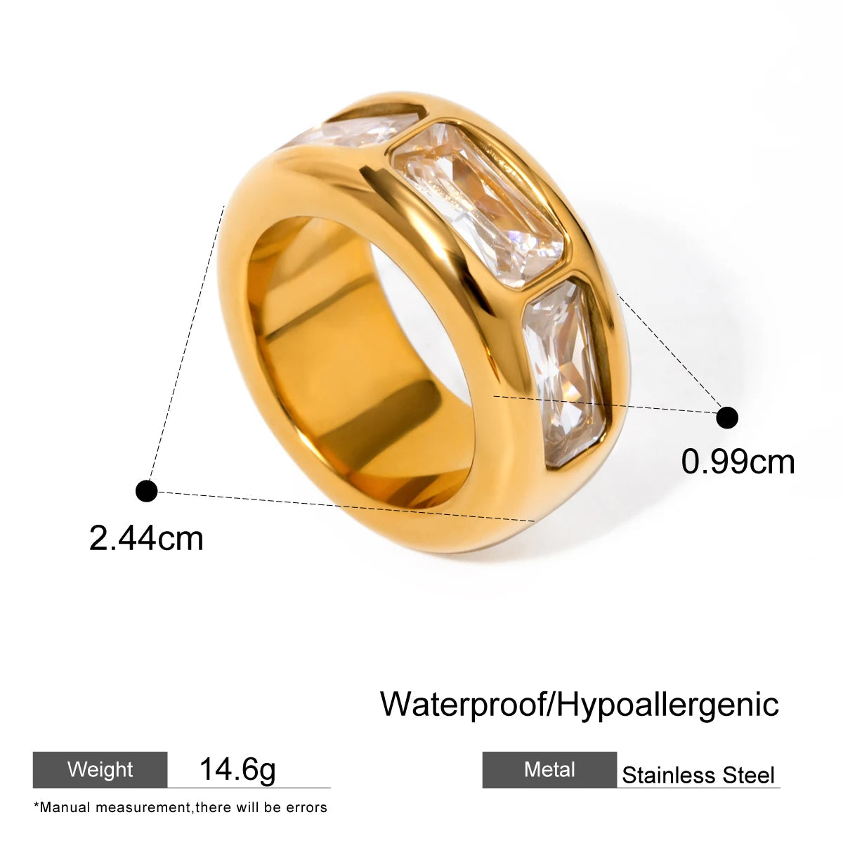 ステンレス304 低ニッケル 水に濡れても錆びにくい 18Kゴールドメッキ リング ジルコニア 【YJ03765】