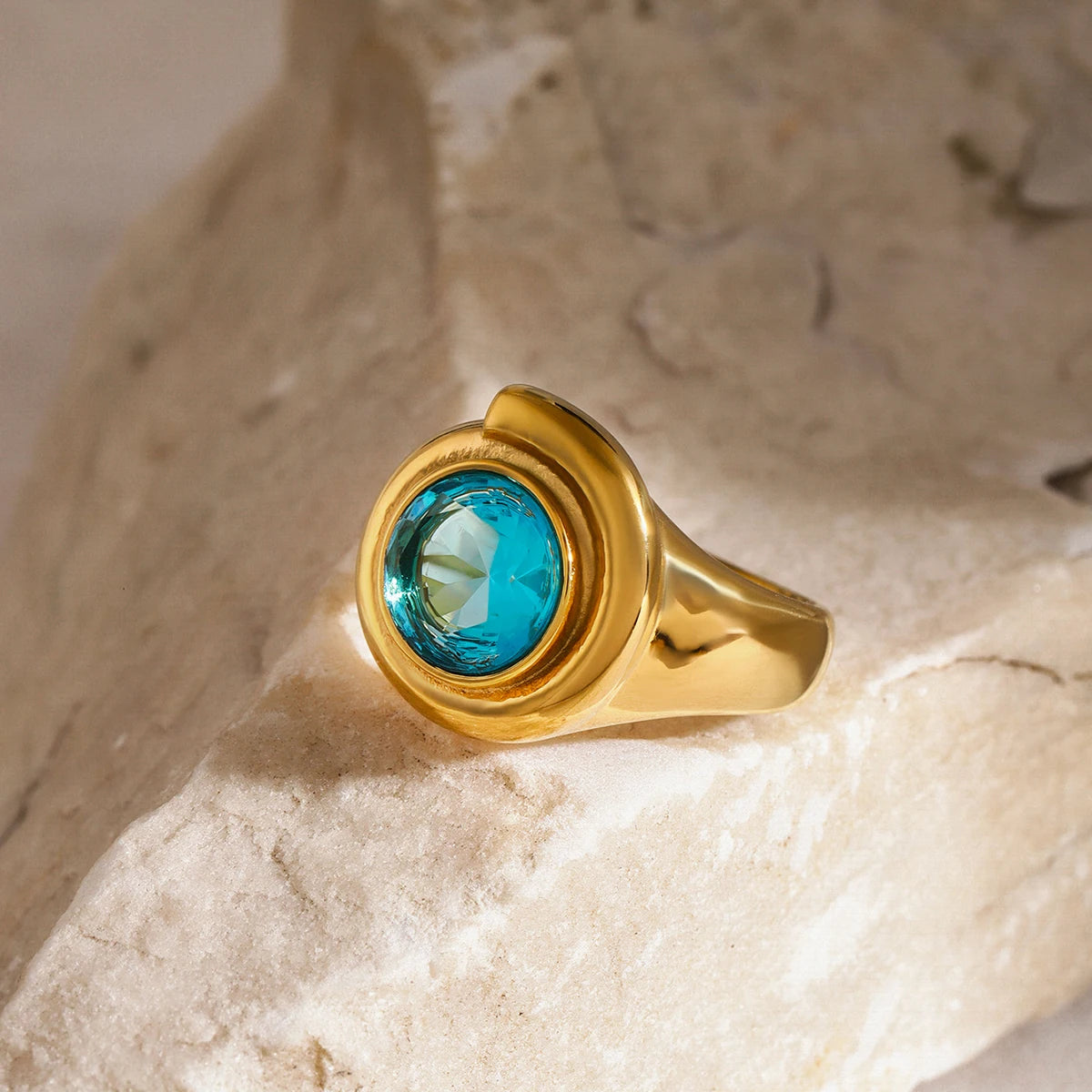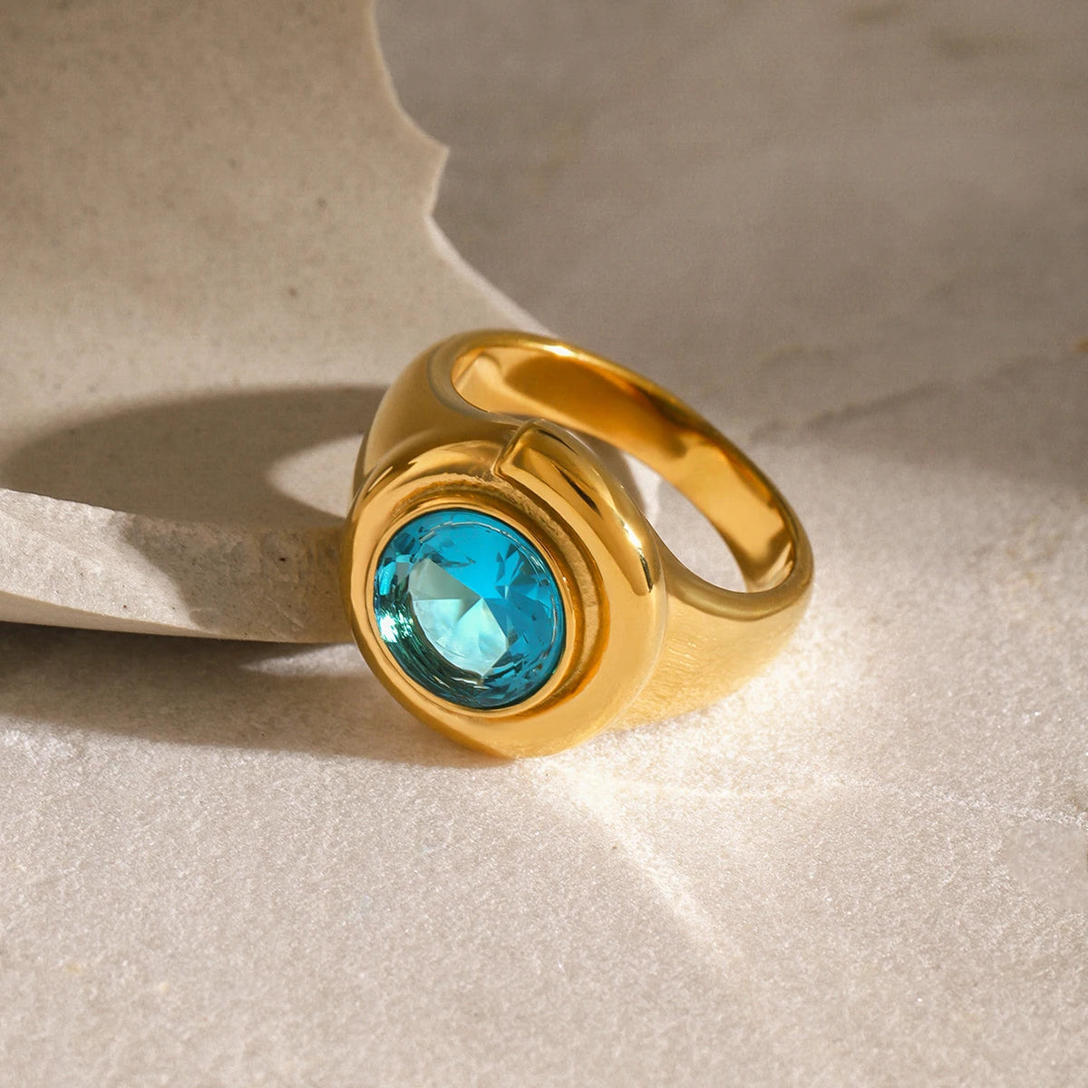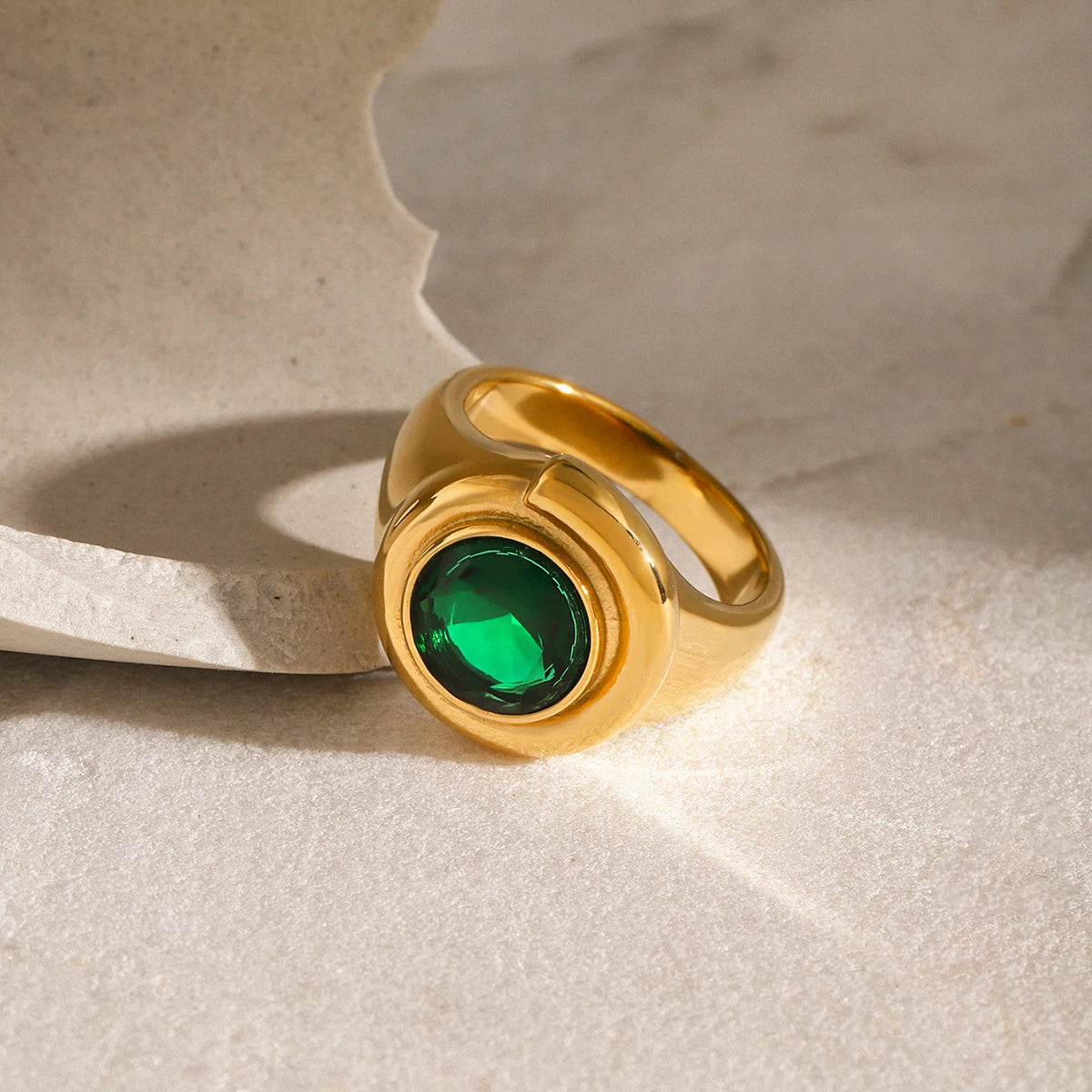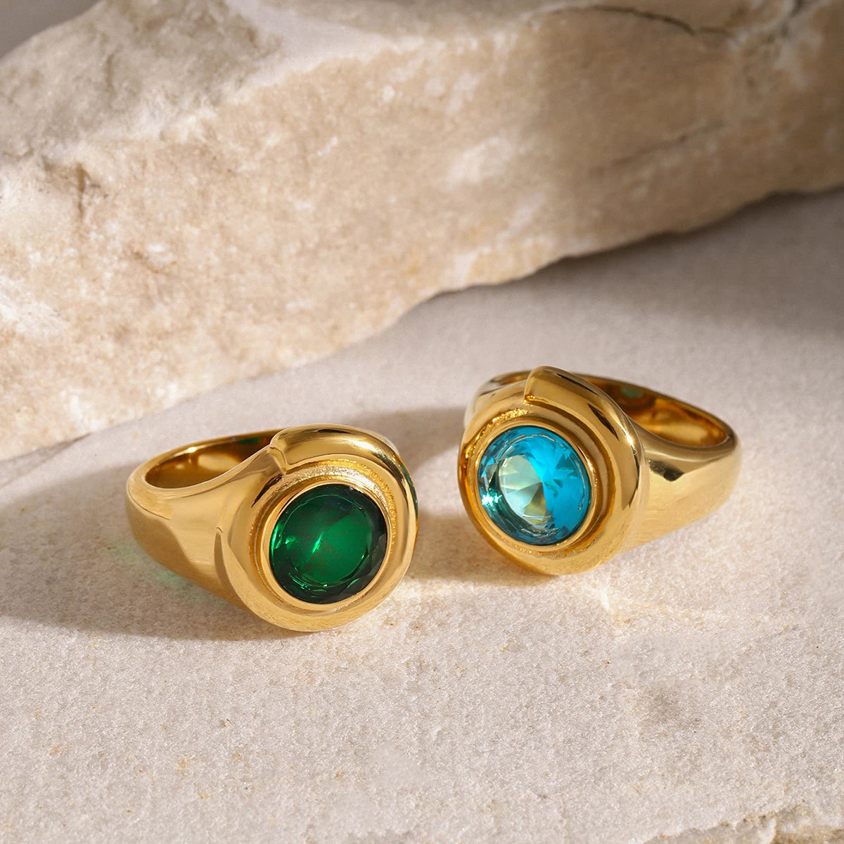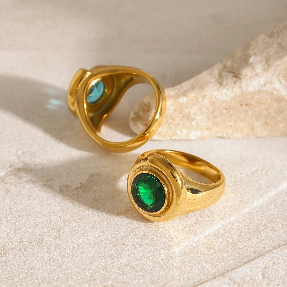 ステンレス304 低ニッケル 水に濡れても錆びにくい 18Kゴールドメッキ リング ジルコニア 【YJ03789】
