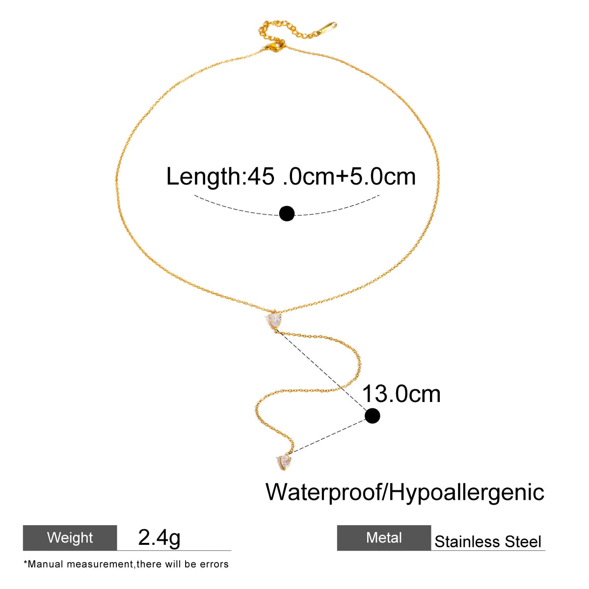 ステンレス304 低ニッケル 水に濡れても錆びにくい 18Kゴールドメッキ ネックレス ジルコニア【YJ03805】