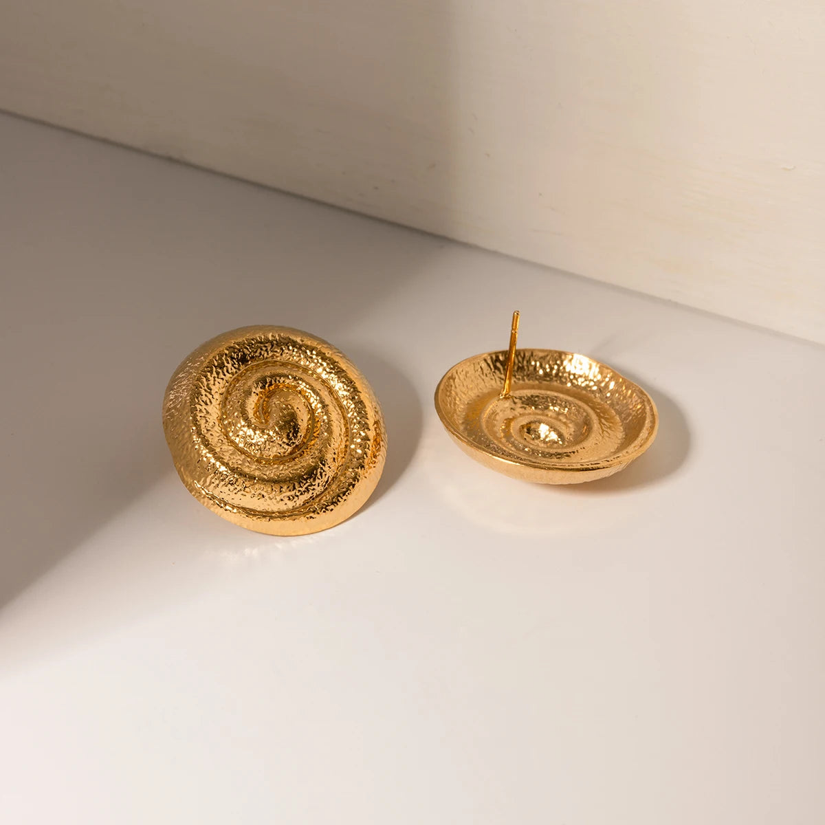 ステンレス304 低ニッケル 水に濡れても錆びにくい 18Kゴールドメッキ ピアス スパイラル 【YJ03809】