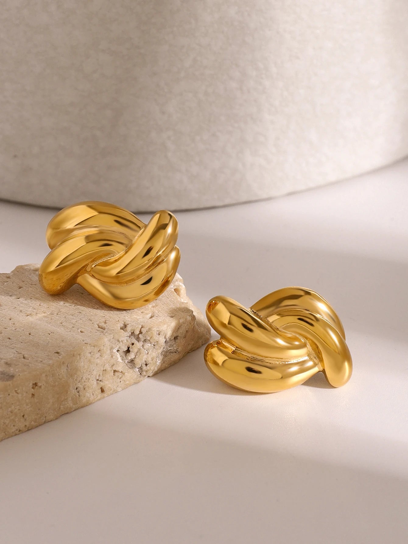 ステンレス304 低ニッケル 水に濡れても錆びにくい 18Kゴールドメッキ ピアス ツイスト 【YJ03813】
