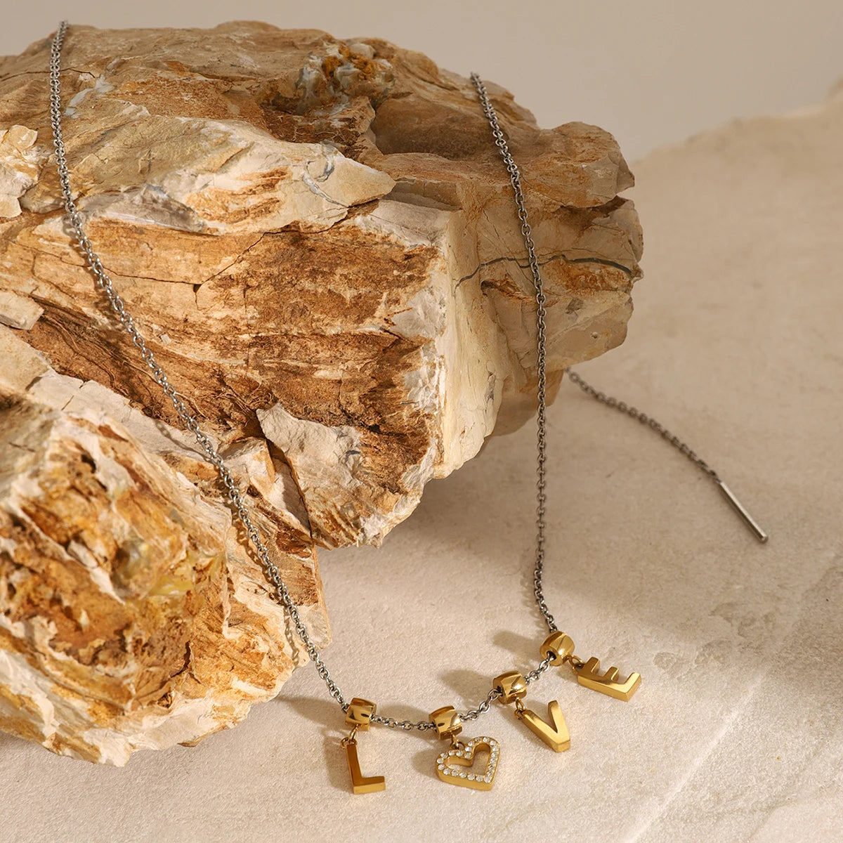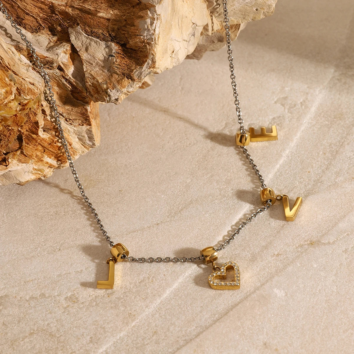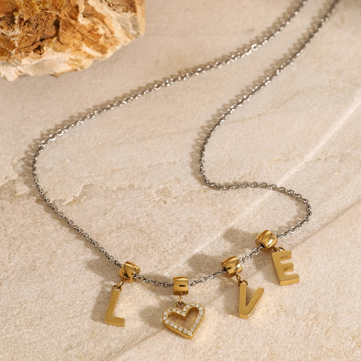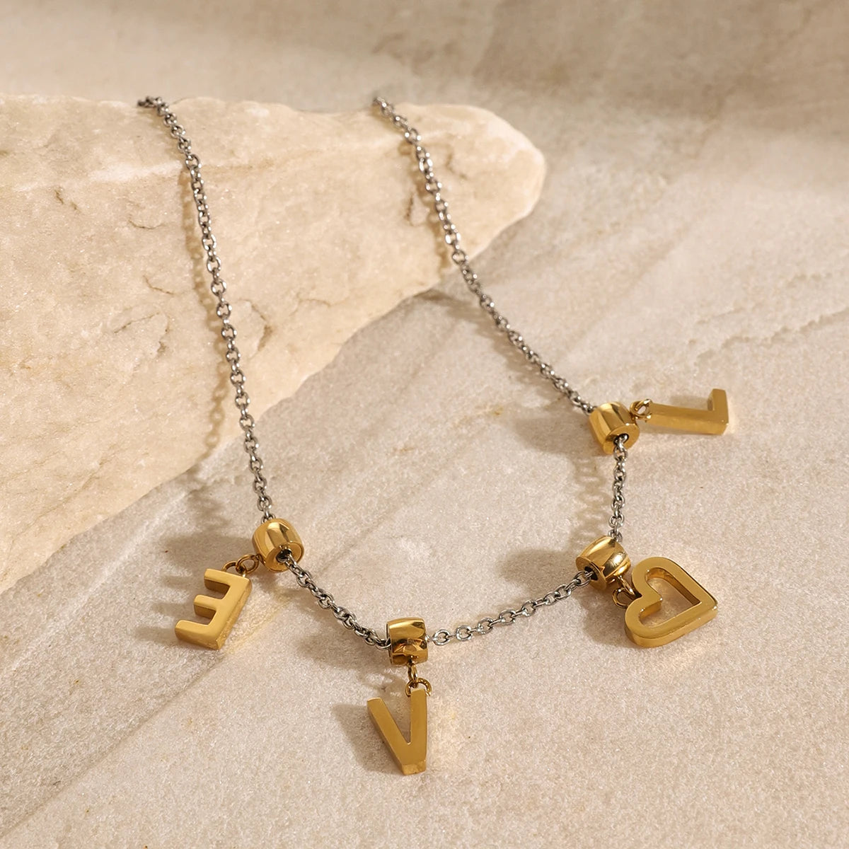 ステンレス304 低ニッケル 水に濡れても錆びにくい 18Kゴールドメッキ ネックレス LOVE 【YJ03838】
