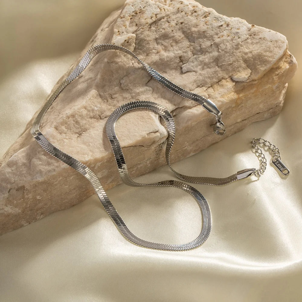 ステンレス304 低ニッケル 水に濡れても錆びにくい ネックレス スネークチェーン 【YJ03848】