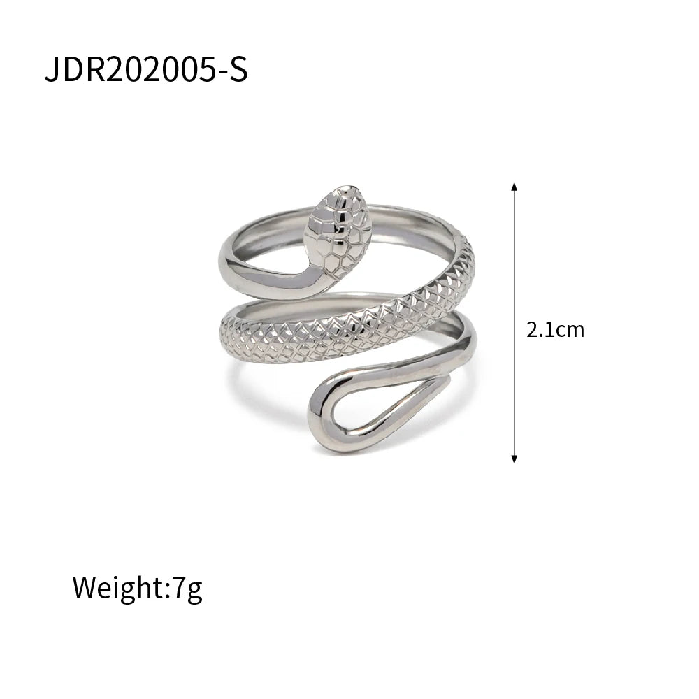 ステンレス304 低ニッケル 水に濡れても錆びにくい 18Kゴールドメッキ リング 蛇 ヘビ スネーク 【YJ03851】